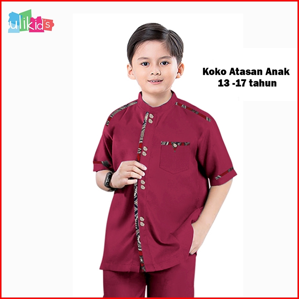 Ulikids Baju Koko Atasan Anak Remaja Laki-laki Tanggung Kombinasi List Batik Muslim Lengan Pendek Usia 13-17tahun Terbar