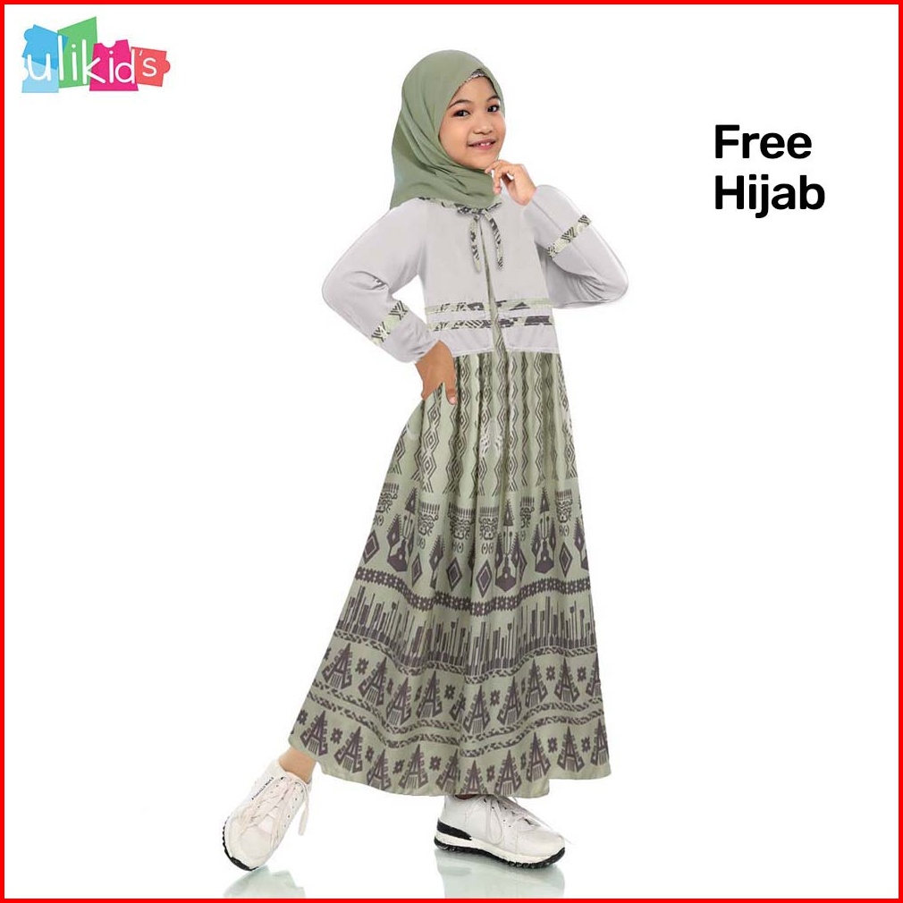 Ulikids Gamis Anak Perempuan Motif Batik Bahan Maxmara Premium Free Jilbab