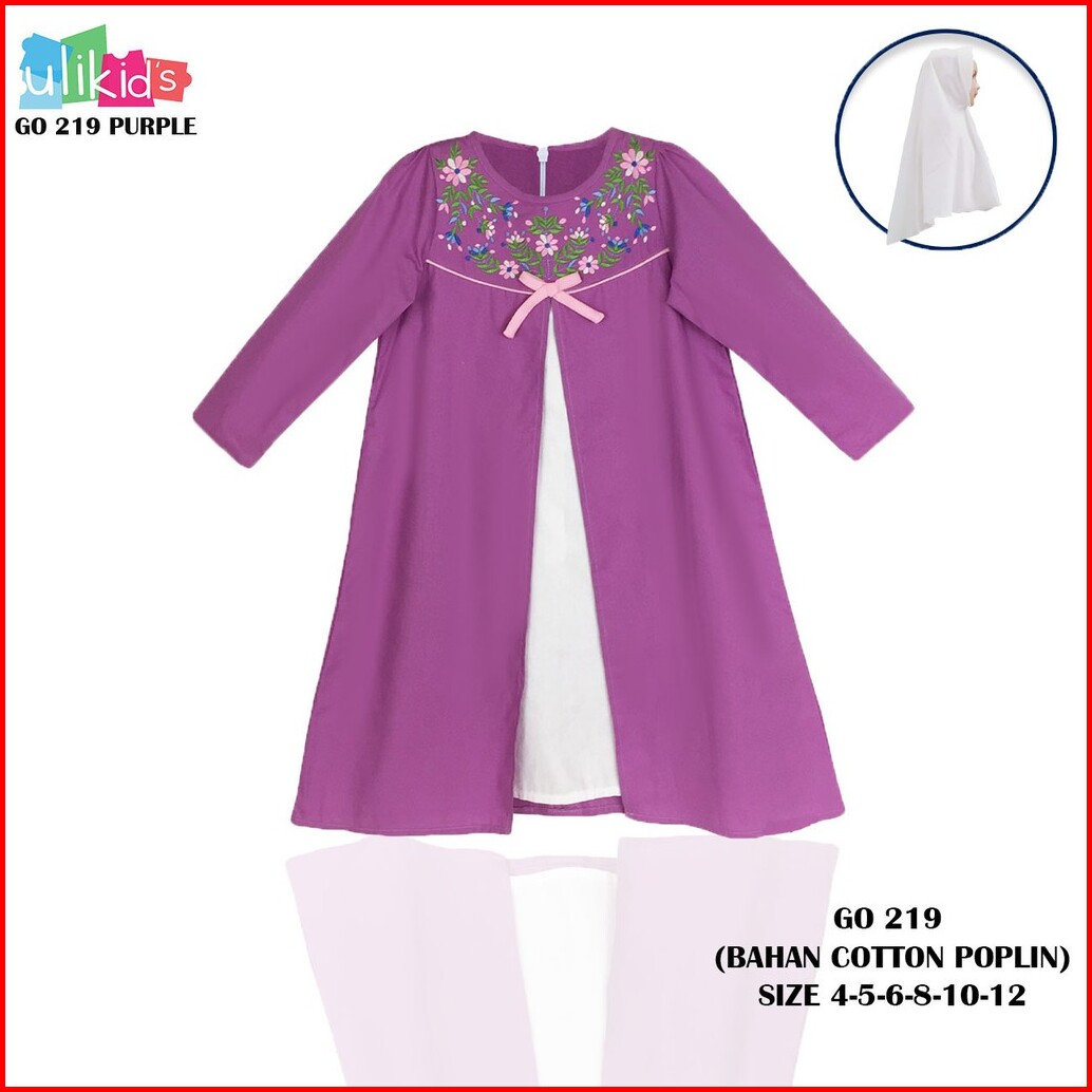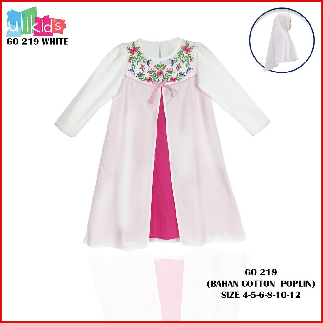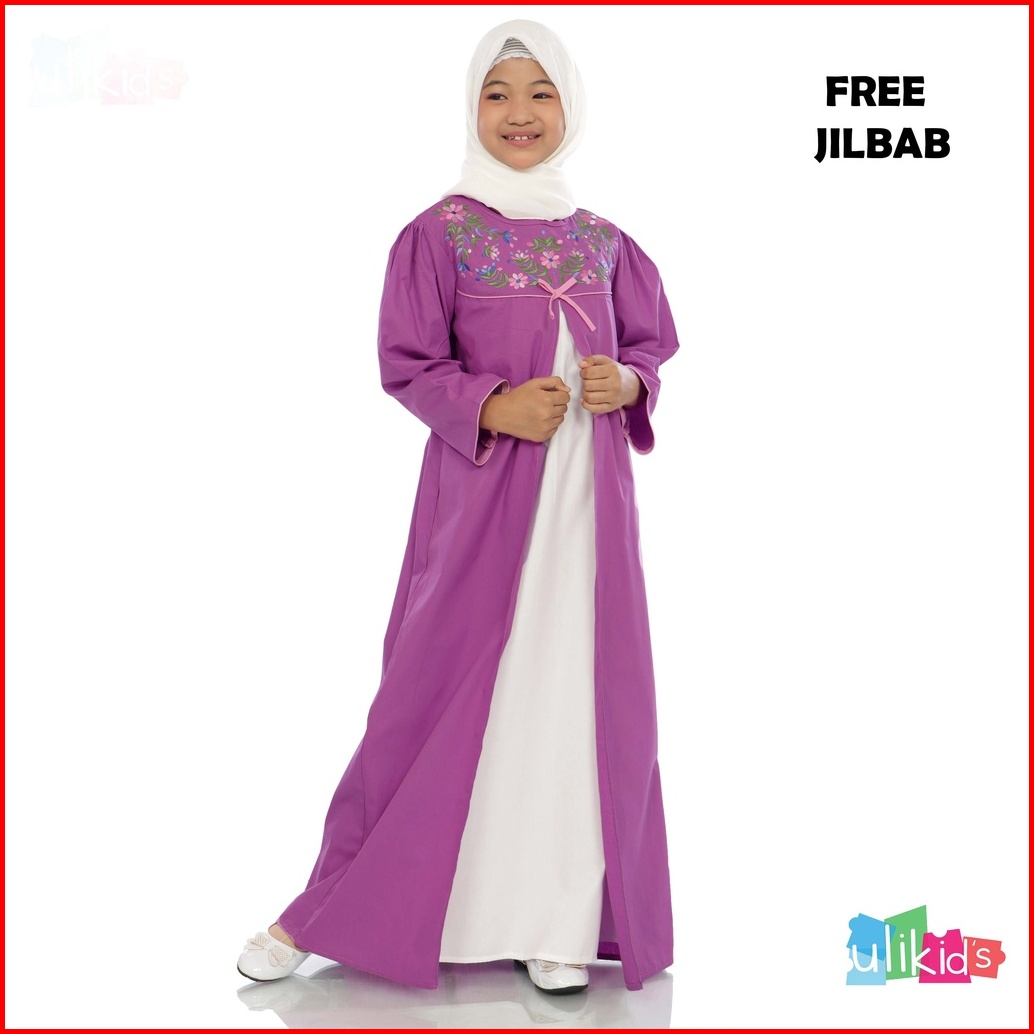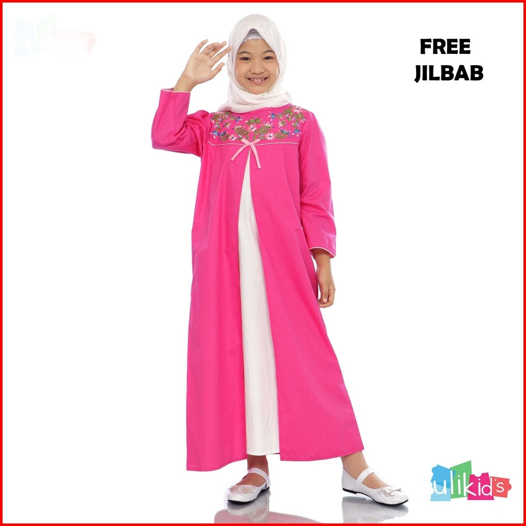 Ulikids Gamis Anak Perempuan Motif Bordir Bunga Bahan Cotton Poplin Premium Promo Free Hijab