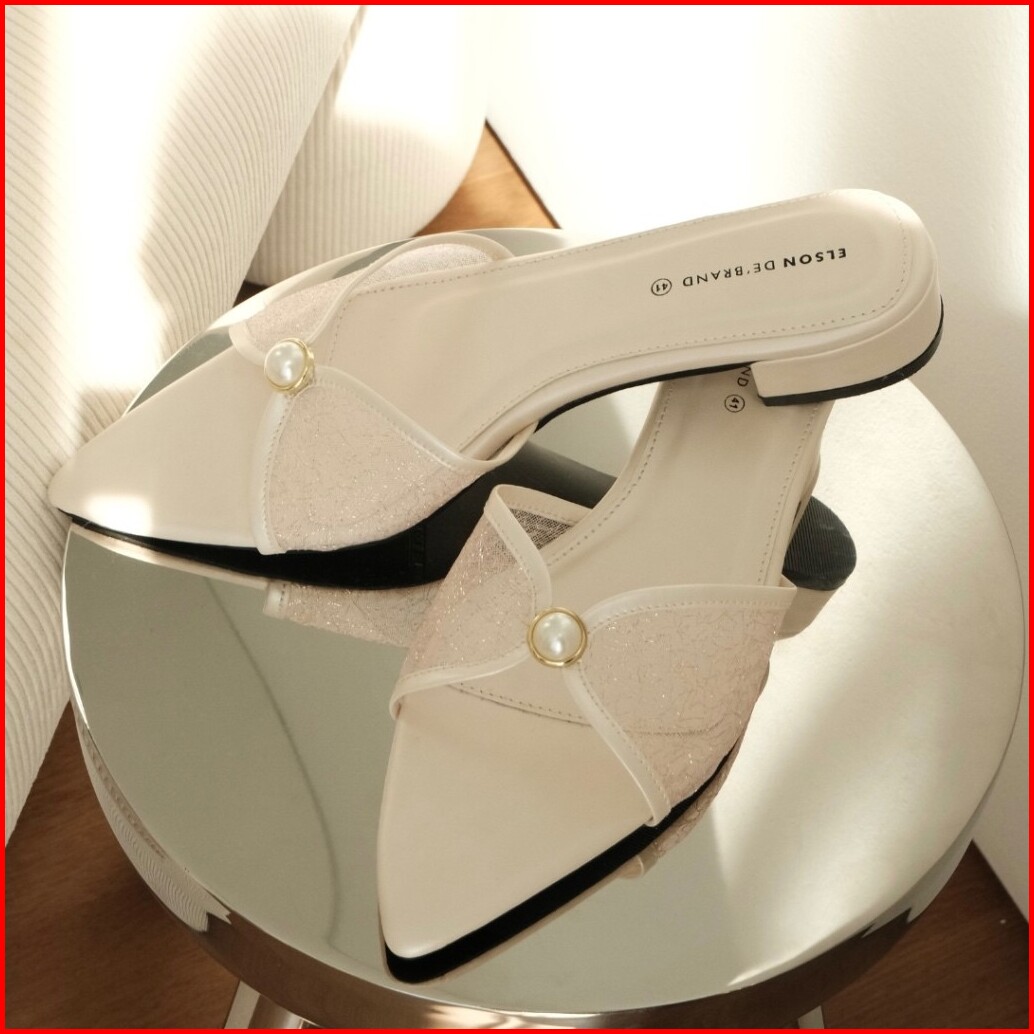 Elson Immy Heels Wanita Elegan Mutiara Jaring Premium Empuk Anti Slip