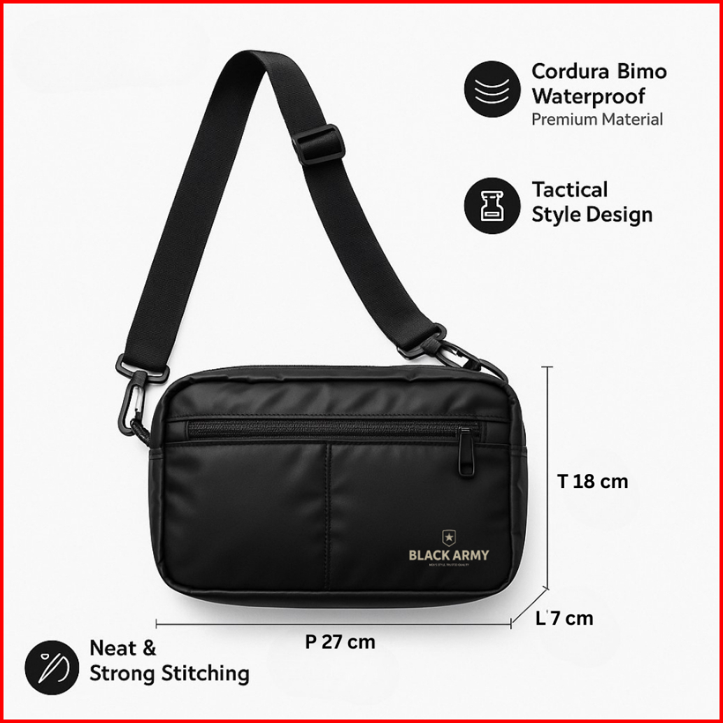 Tas Selempang Pria Black Army Hitam Keren Stylish