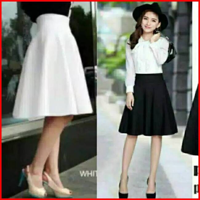 Rok Pendek Polos Midi Flare Skirt Rok Pendek Bahan Scuba Premium Rok Pendek Wanita