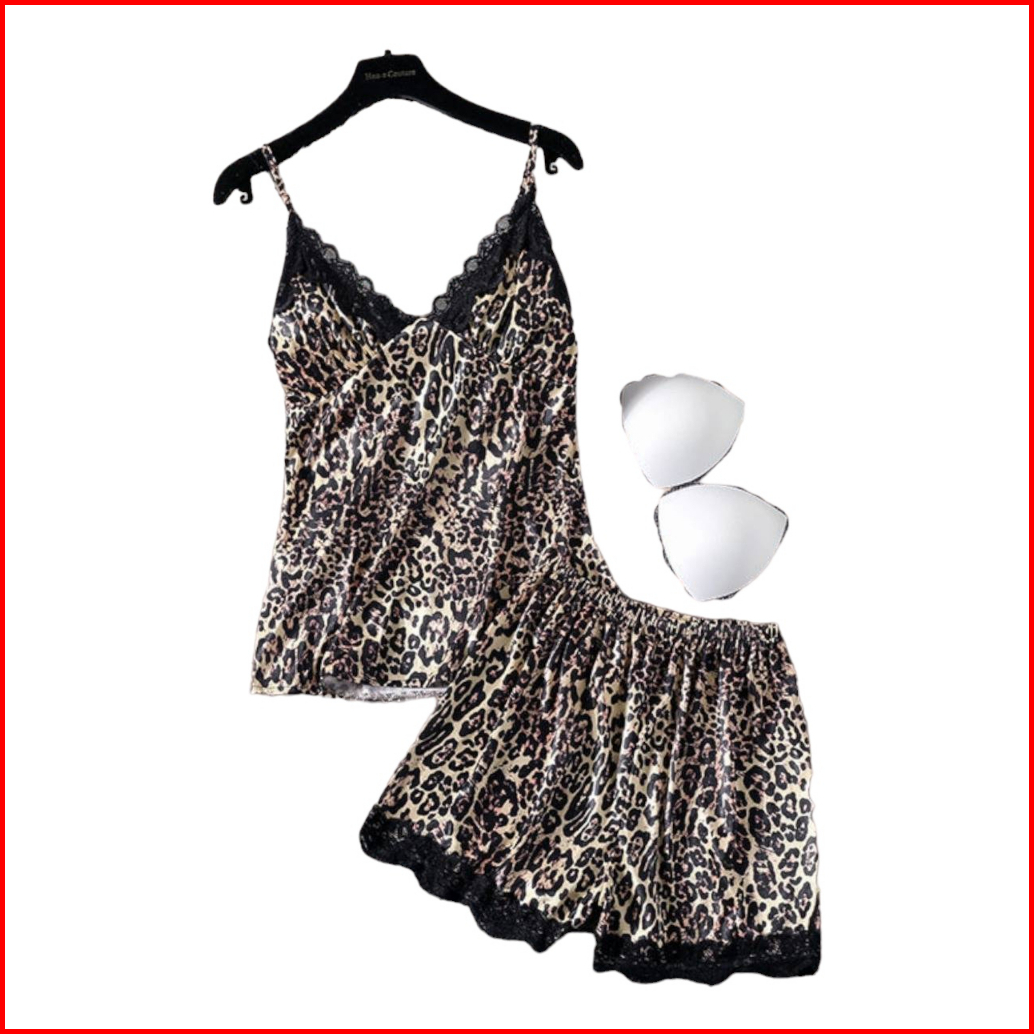 Stelan Daster Cup Bra Import Satin Leopard Motif Macan Premium Silk