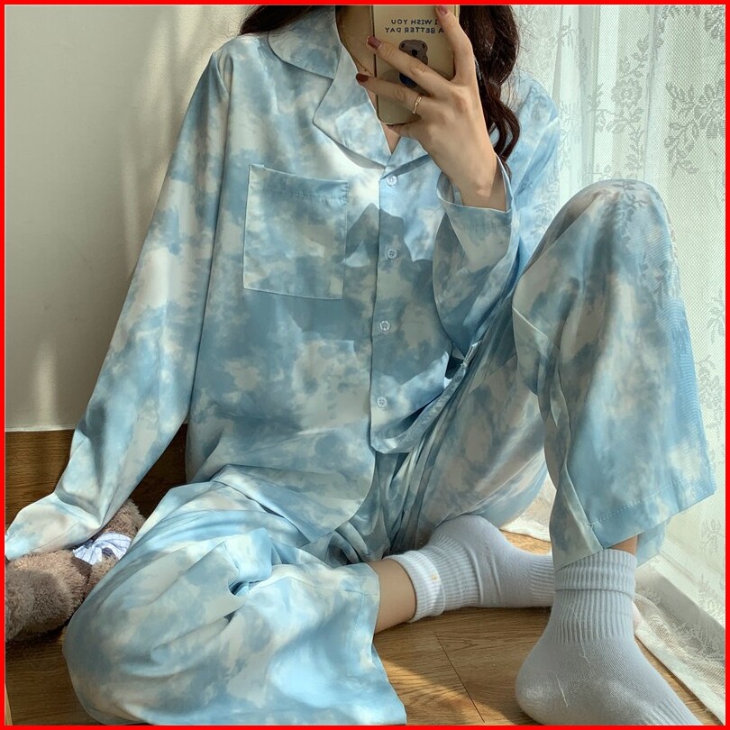 Baru Musim Gugur Es Sutra Piyama Ukuran Besar Celana Panjang Lengan Longgar 2 Potong Setelan Sleepwear