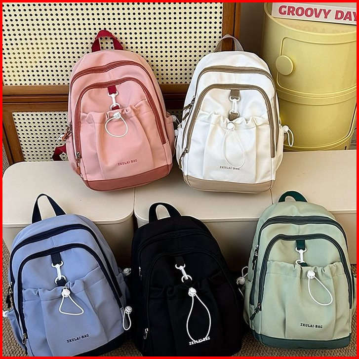 Guvdiv Tas Ransel Wanita Macaron Kuliah Tas Ransel Tas Bahu Warna Tabrakan Backpack Tas Laptop
