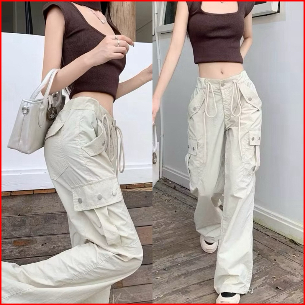Lily Cargo Celana Wanita Highwaist Korean Style - Celana Cargo Highwaist Loose Pants Kasual Premium