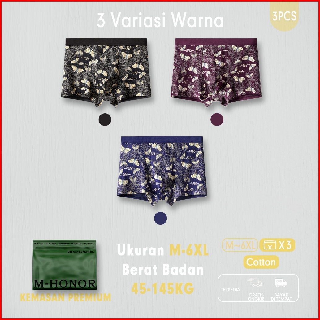 Isi 3pcs M-honor Harga Spesial Ukuran Besar Celana Boxer Pria Cotton Q4