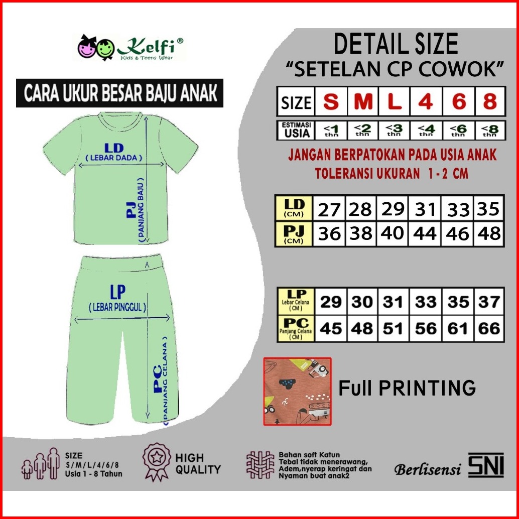 Promo 11.11 Kelfi Setelan Cp Full Printing Set Baju Anak Cp 1-8 Tahun Migoo Edition