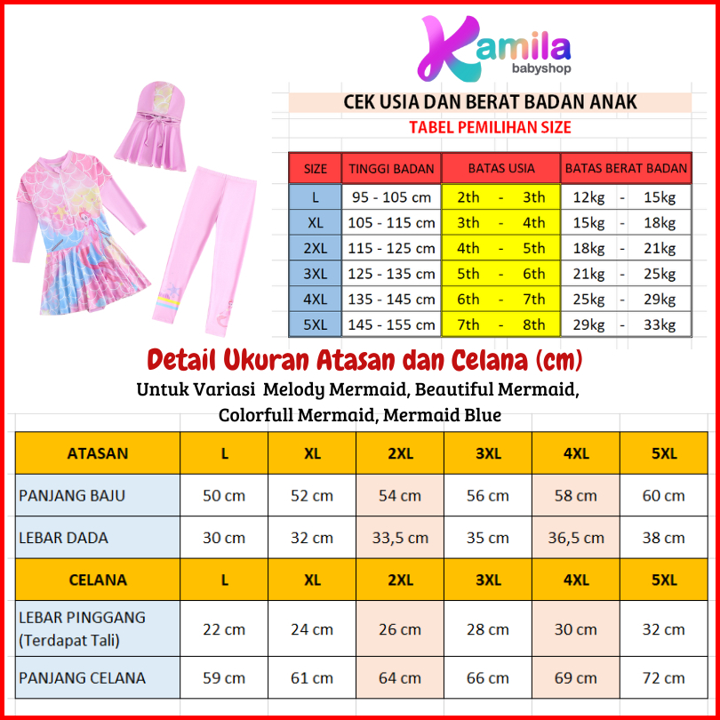 Et22 Baju Renang Anak Perempuan Jilbab Size Xl-5xl Usia 3-8 Th Baju Renang Anak Perempuan Hijab Resleting Baju Renang An