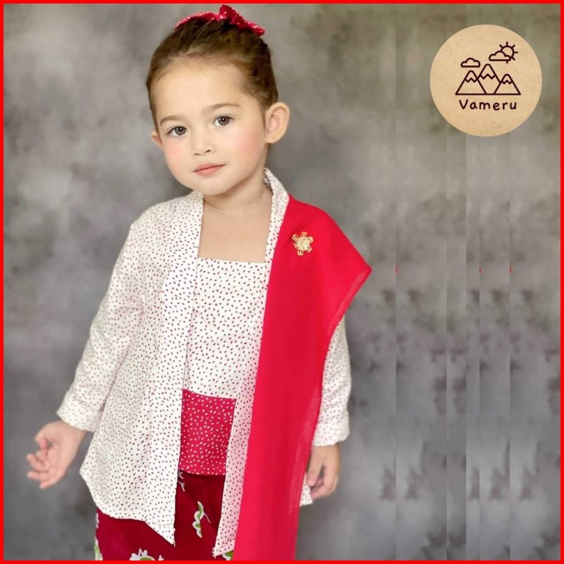 Vameru - Kebaya Anak Vameru Merah Putih Kutubaru Setelan Batik Setelan Katun Jepang Ayam Simbok
