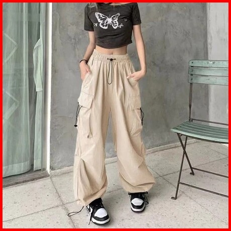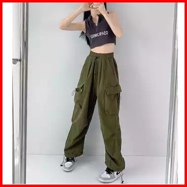 Celana Cargo Wanita Highwaist Loose Pants Trouser Korean Style - Celana Gunung Highwaist Premium