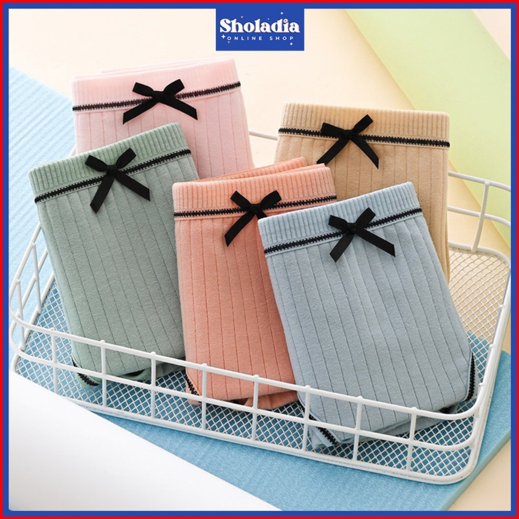 Moow Celana Dalam Wanita Motif Garis Hitam Pita Polyester Spandex Cdw011 Paket 6 Pcs