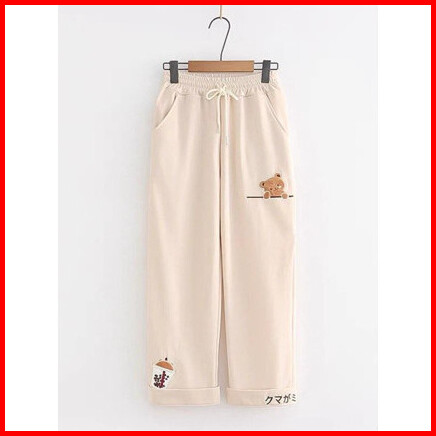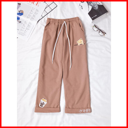 Tf - Bear Boba Pants Jogger Kulot Fleece Tebal Bawahan Celana Highwaist Japan Style Wanita