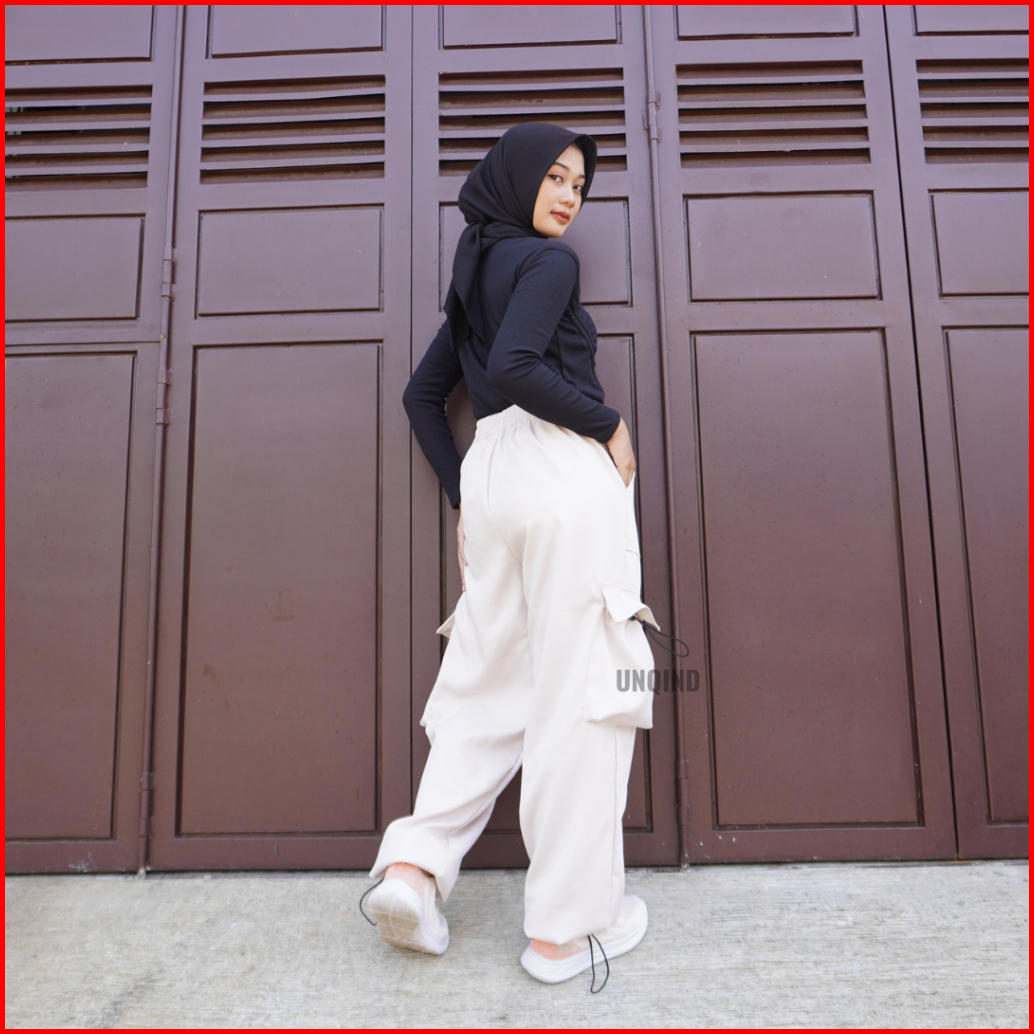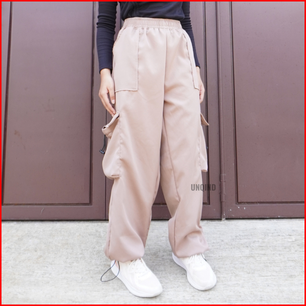 Unqind - Celana Cargo Wanita Harajuku Korean Style Drill Twill - Kulot Cargo Tali Serut