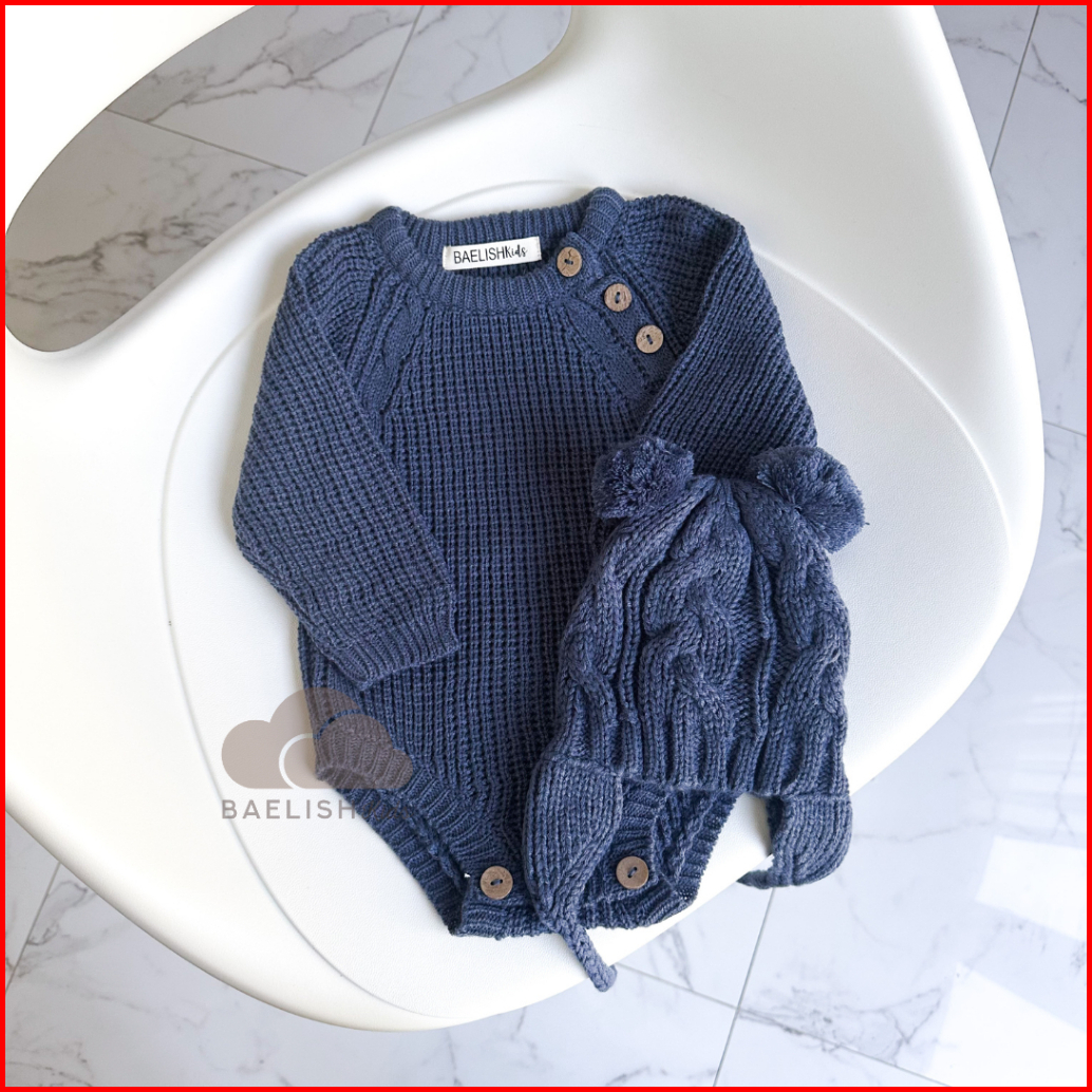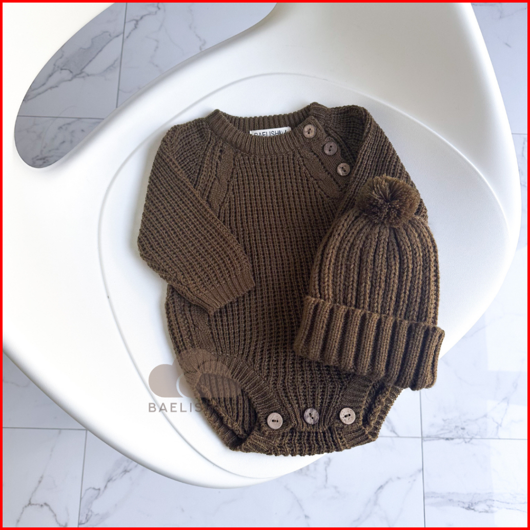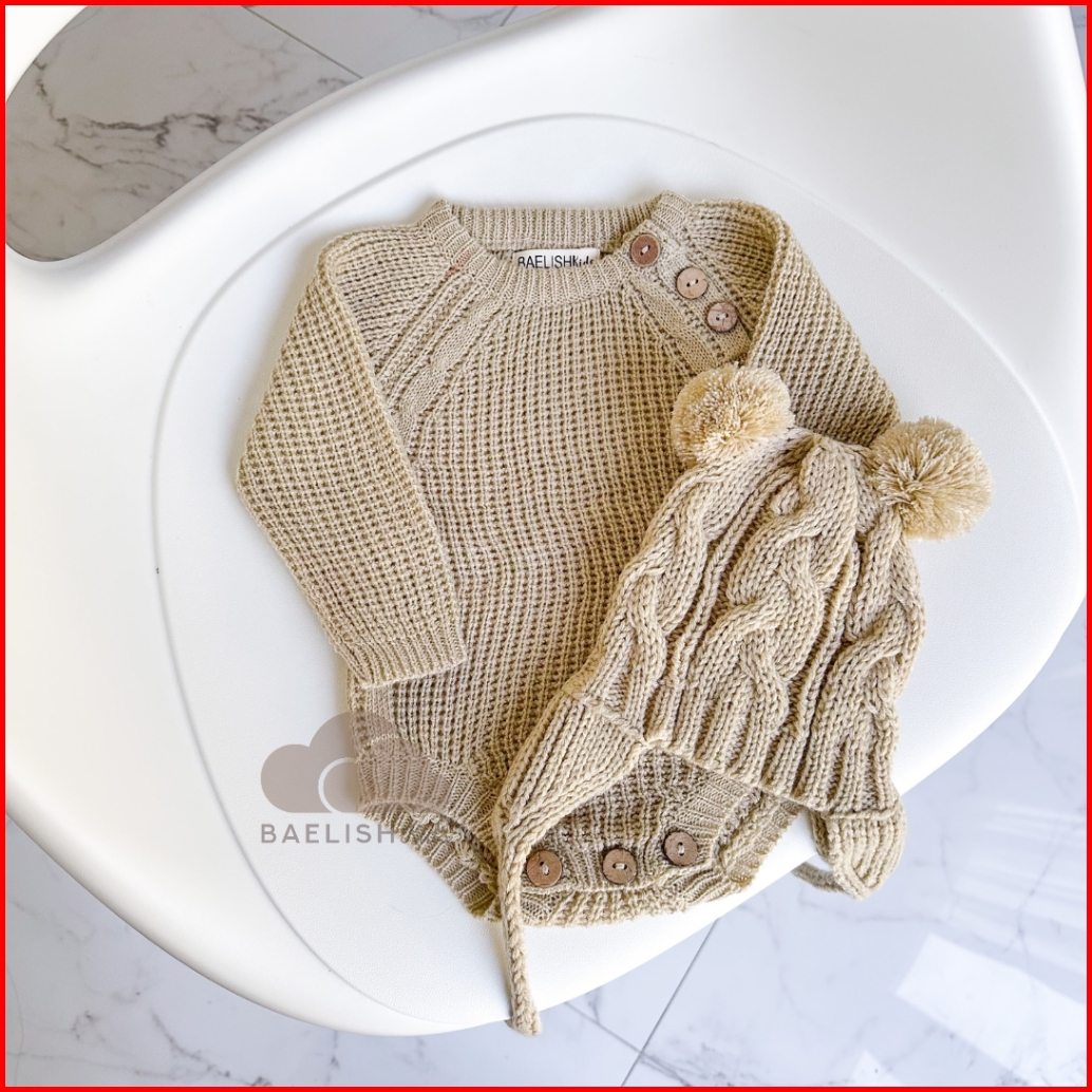 Knit Jumper Dan Kupluk Bayi Topi Rajut Beanie Hat Bodysuit Romper Baby Newborn Baelish Kids