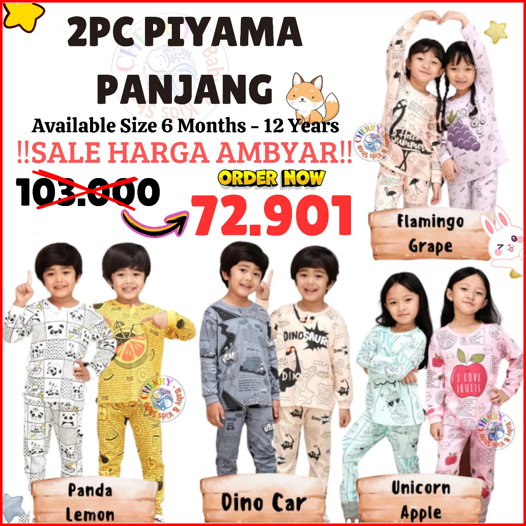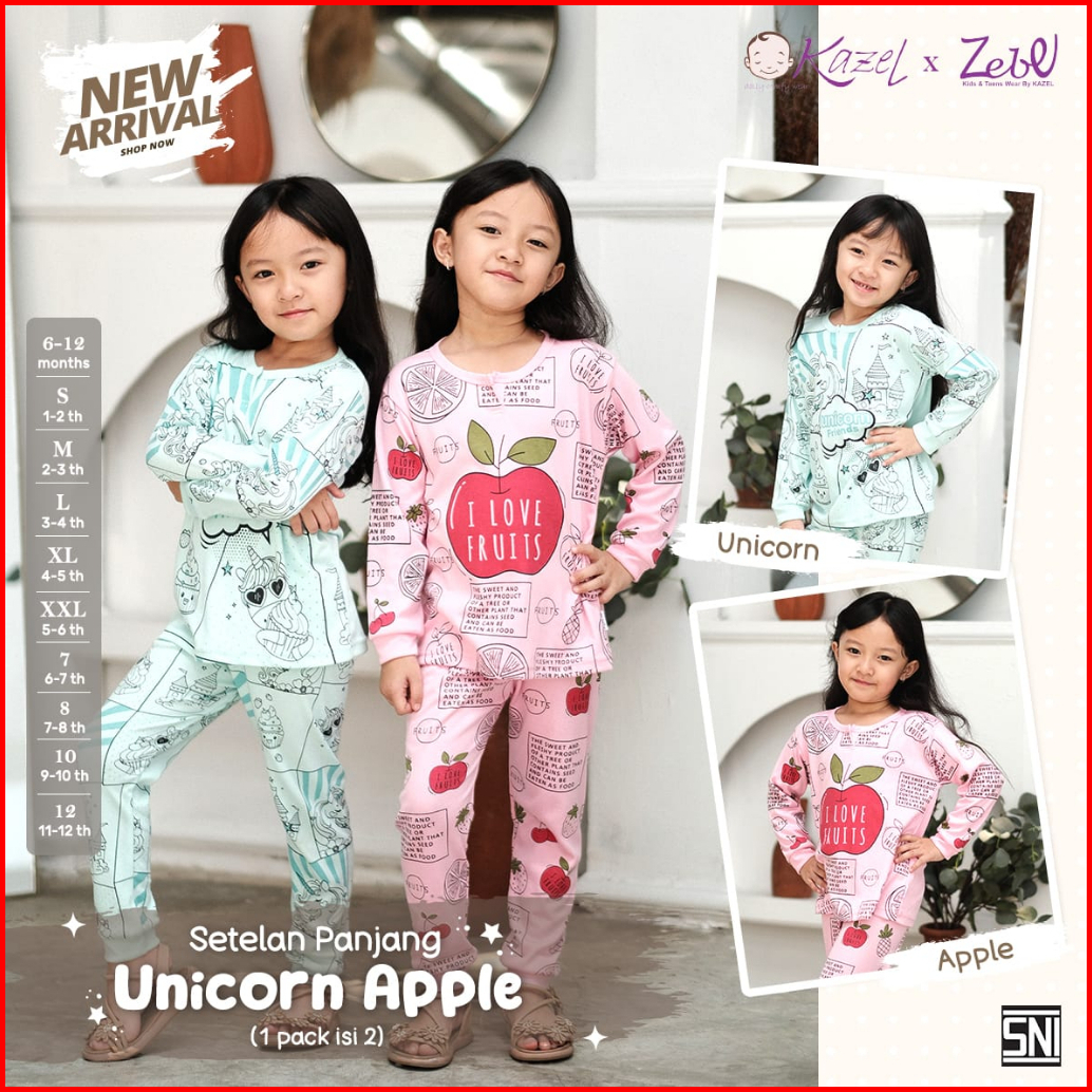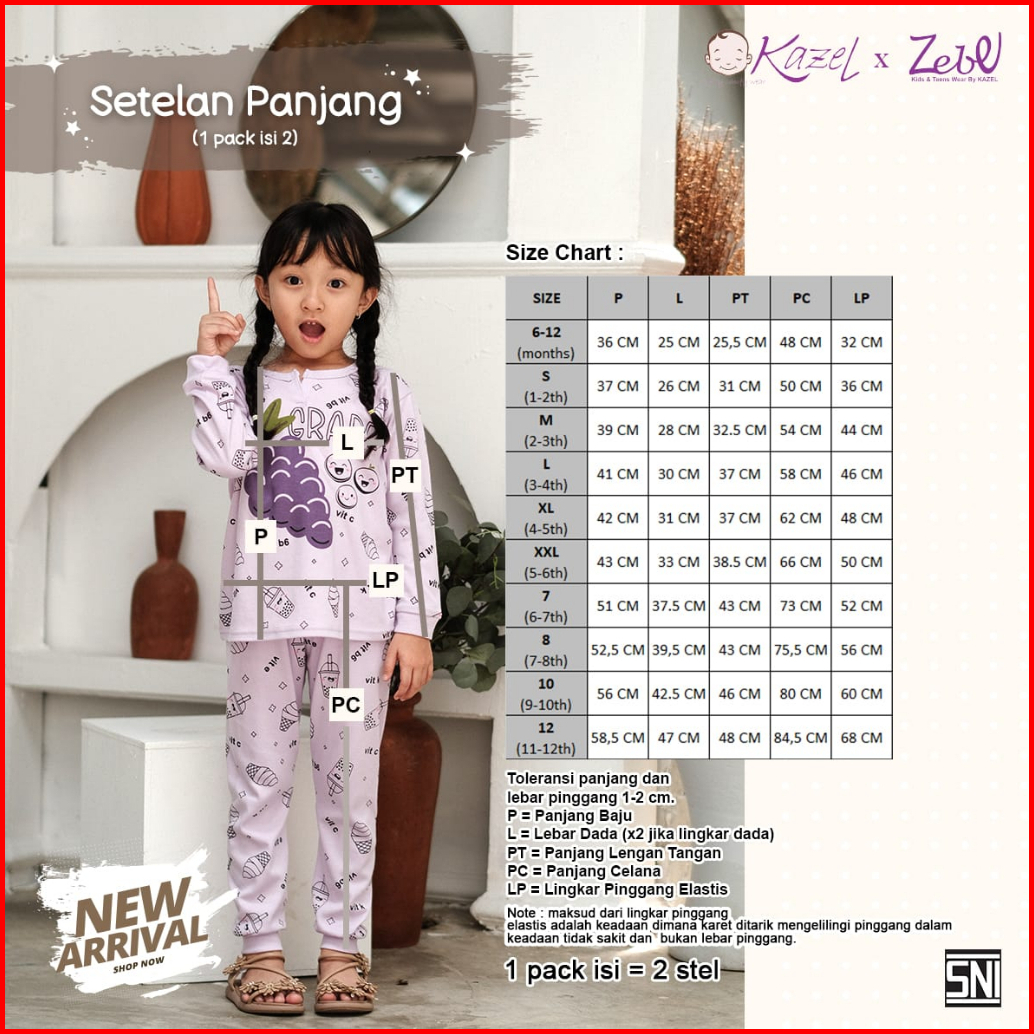 Ambyar Kazel 2pcs 1-12 Tahun Piyama Panjang Setelan Piyama Panjang Anak X Zebe Motif Cbks