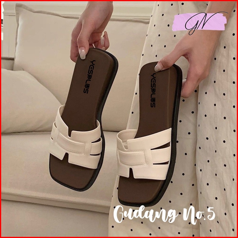 Gn-820-1 Sandal Selop Flat Sandal Jelly Antislip Model Teplek Wanita Import Pcu Terbaru