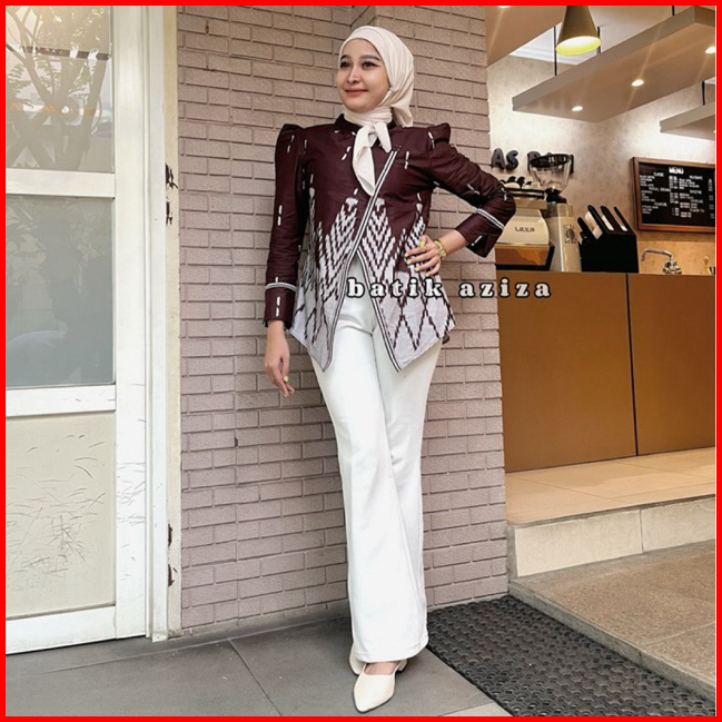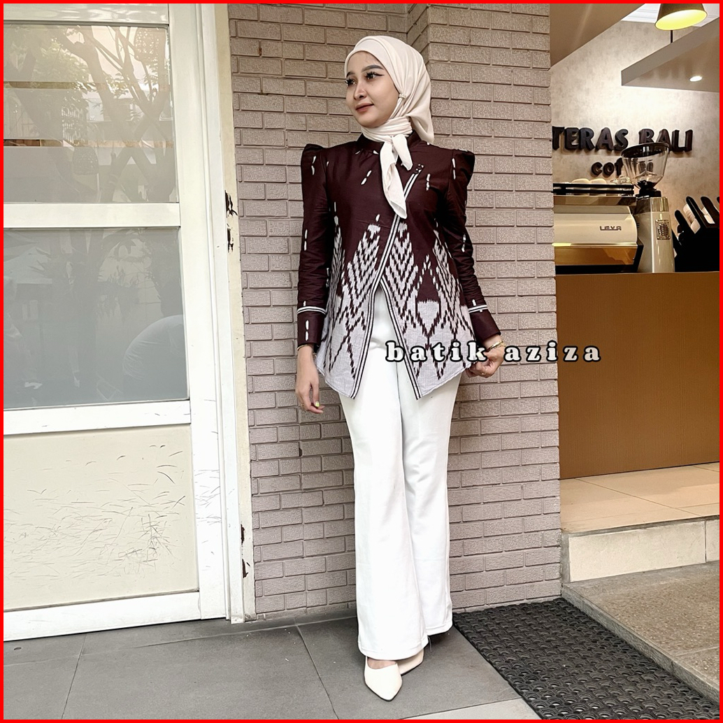 Batik Aziza- Atasan Batik Wanita Kebaya Janggan Motif Songket Lengan Panjang Bahan Katun Tebal