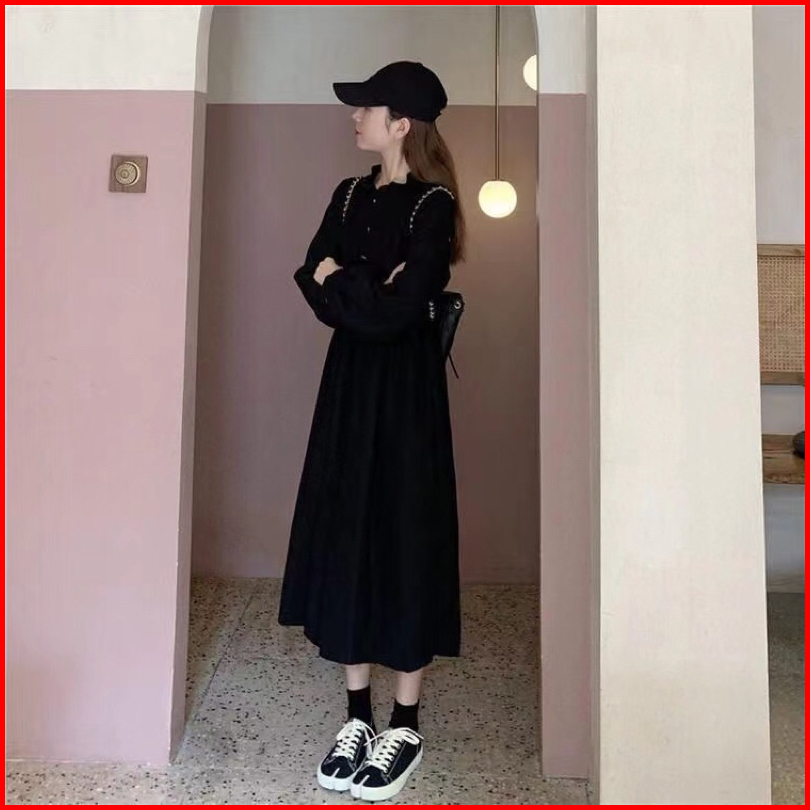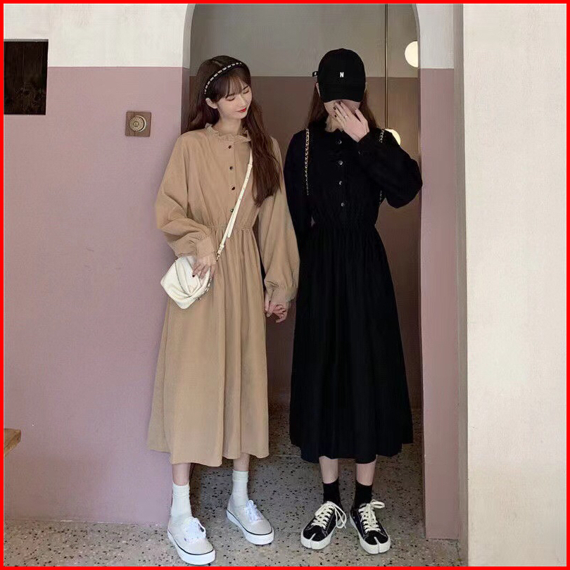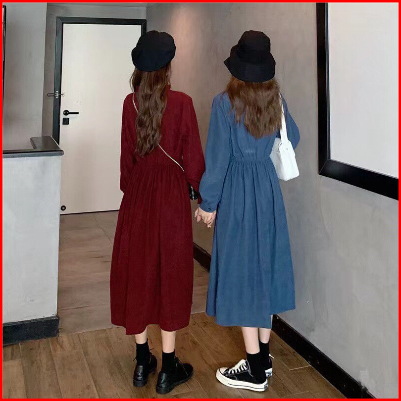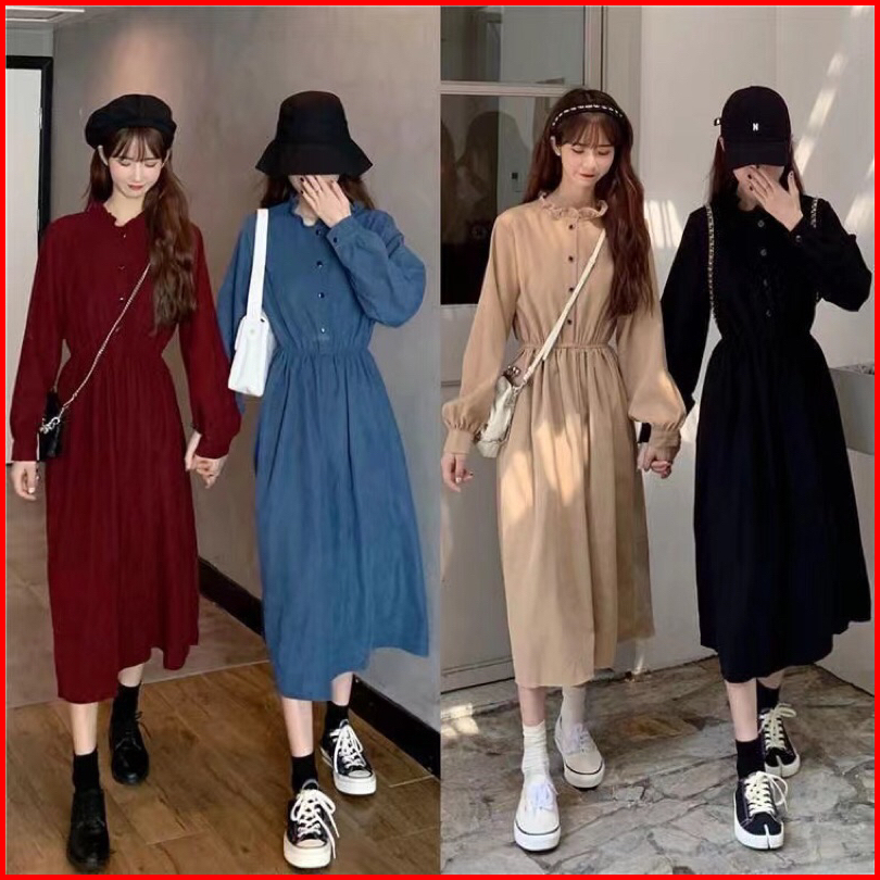 First Girl-ready Stock Gaun Retro Polos Pinggang Ramping Dress Lucu Dress Casual - G033