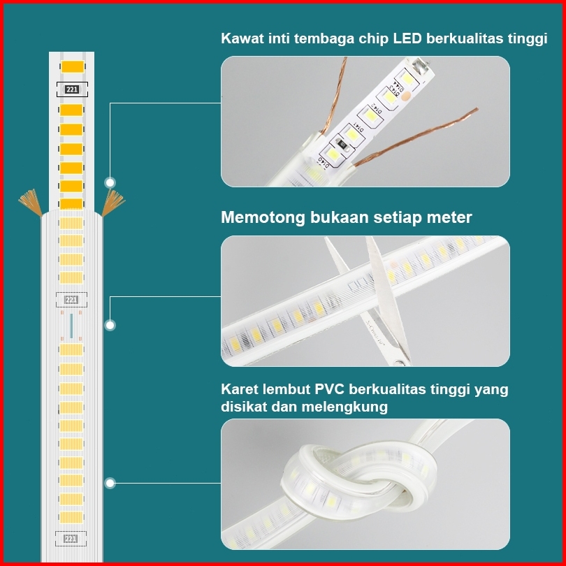 Lampu Led Light And Lencana 220v Suasana Kamar Tidur Strip Ringan Sangat Terang Lampu Neon 15m 20m
