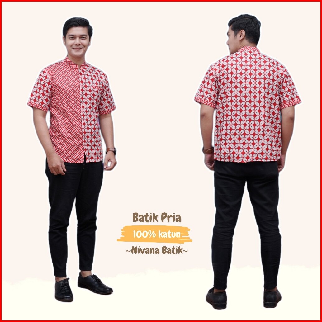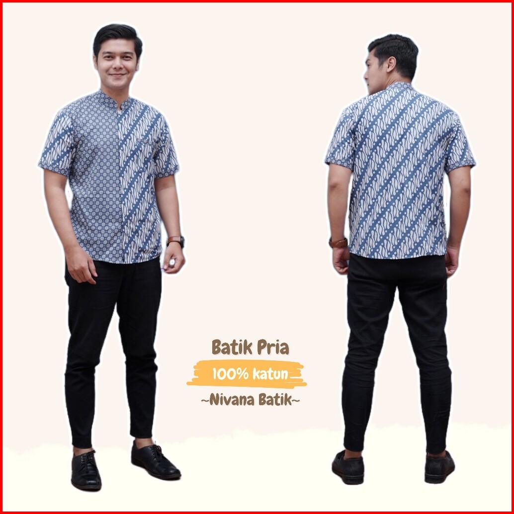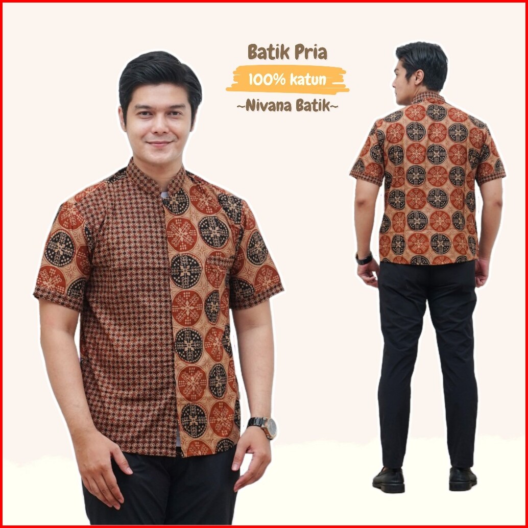 Batik Pria Kemeja Koko Kombinasi Lengan Pendek