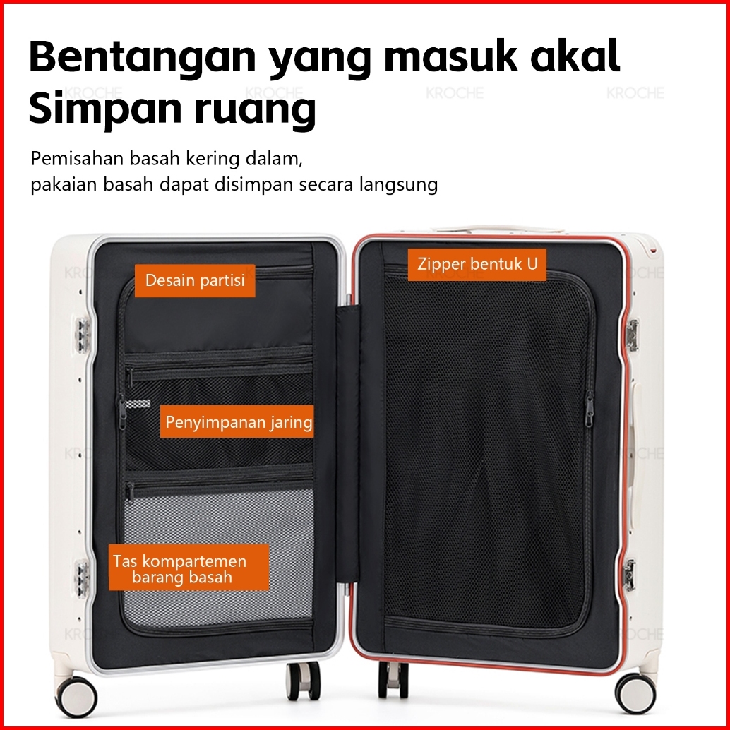 Kroche - Koper Cabin Bagasi 20 32 Inch Koper Fiber Anti Pecah Bahan Polycarbonate With Tsa Lock
