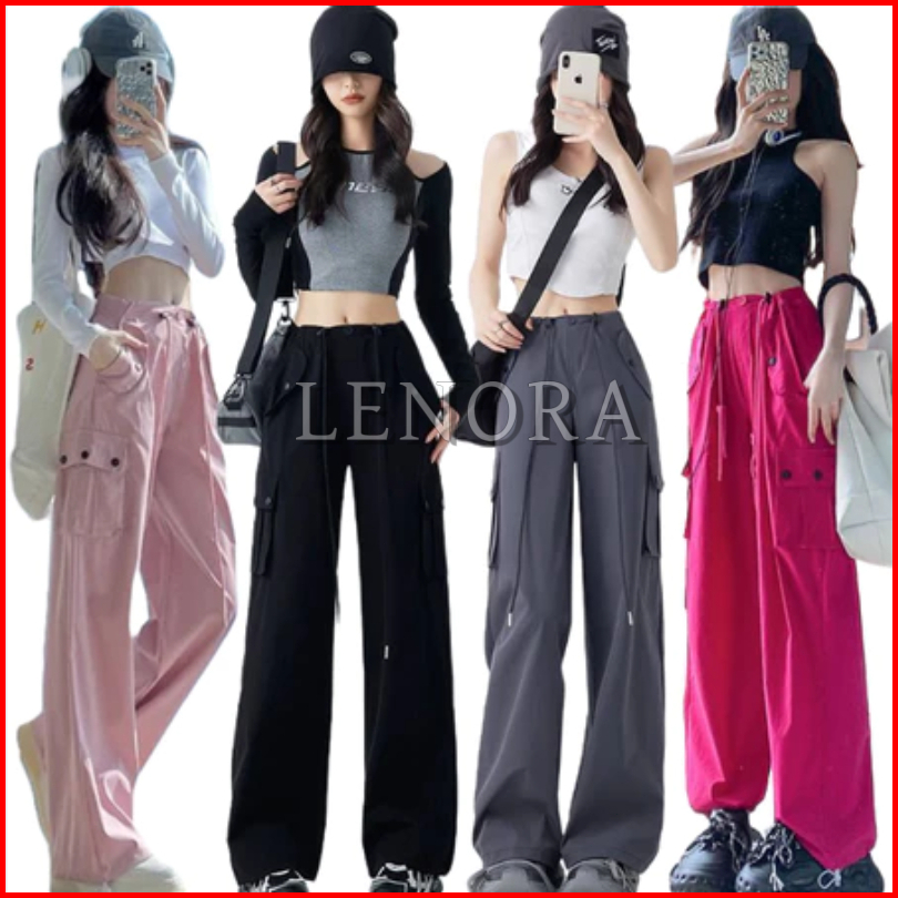 S-5xl Overall Retro Serbaguna-celana Lurus Pinggang Tinggi Tipis-celana Kaki Lebar Kasual Longgar-celana Olahraga Untuk