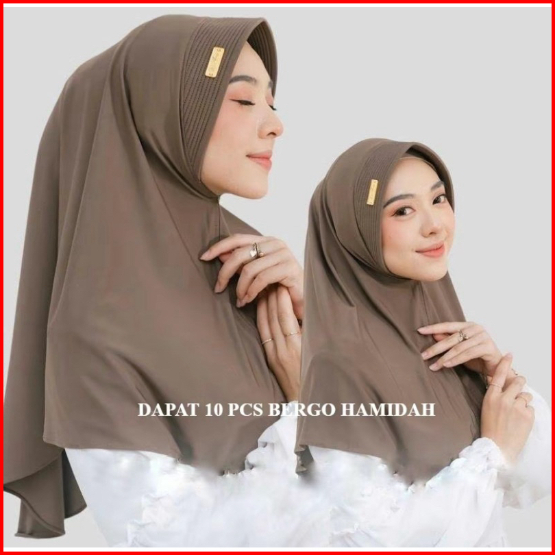 10 Pcs 100rb Jilbab Bergo Hamidah Size M Label Akrilik Menutup Dada Cantik Lembut Spandex Premium Kerudung Pad Busa Teba