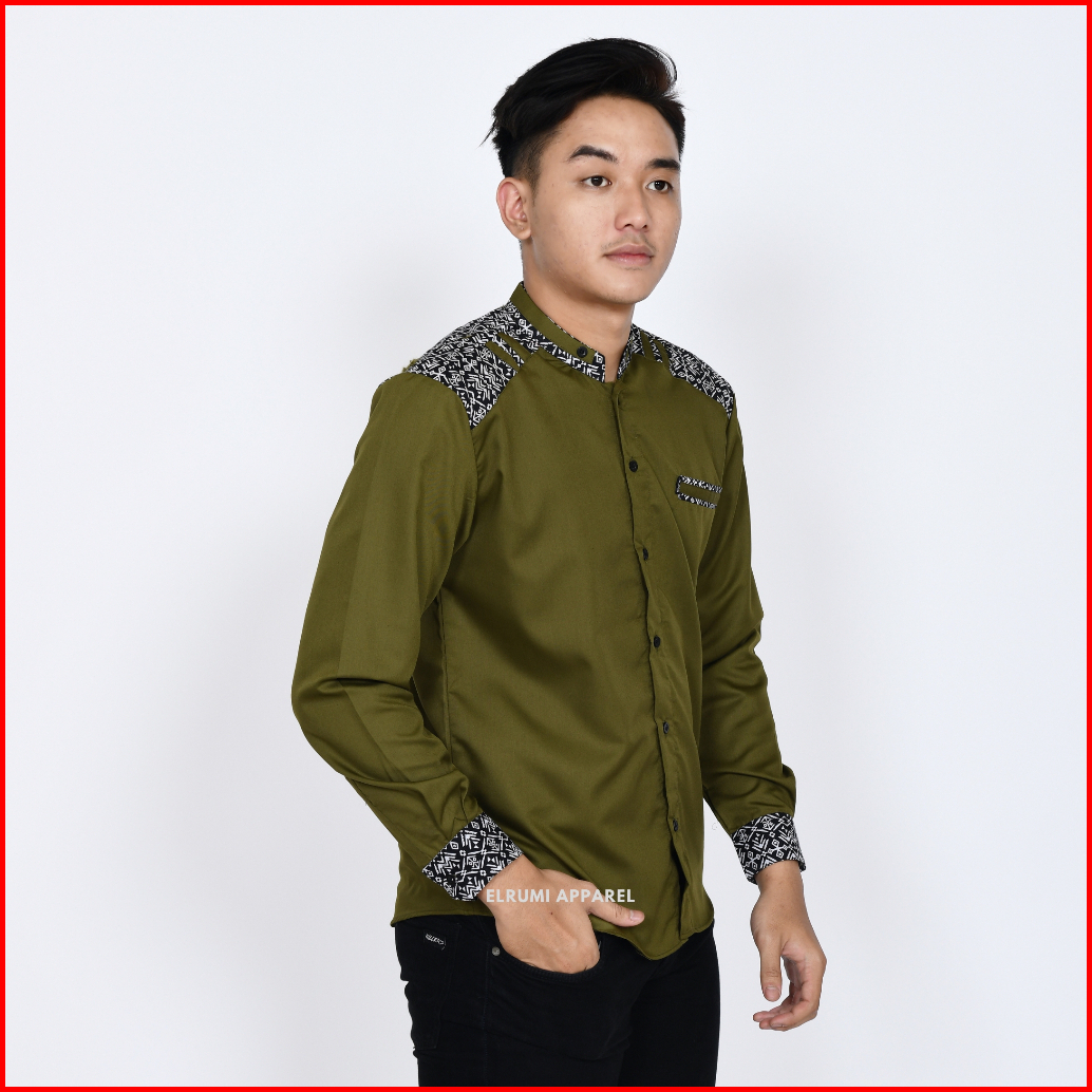Baju Koko Pria Lengan Panjang Elrumi Kombinasi Batik Motif Adidis Katun Toyobo