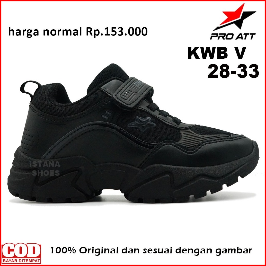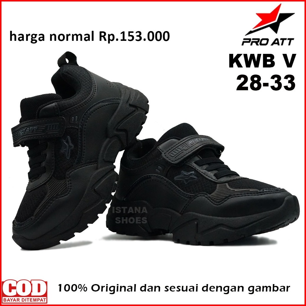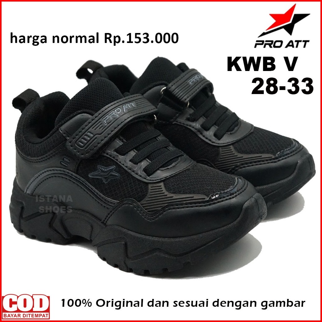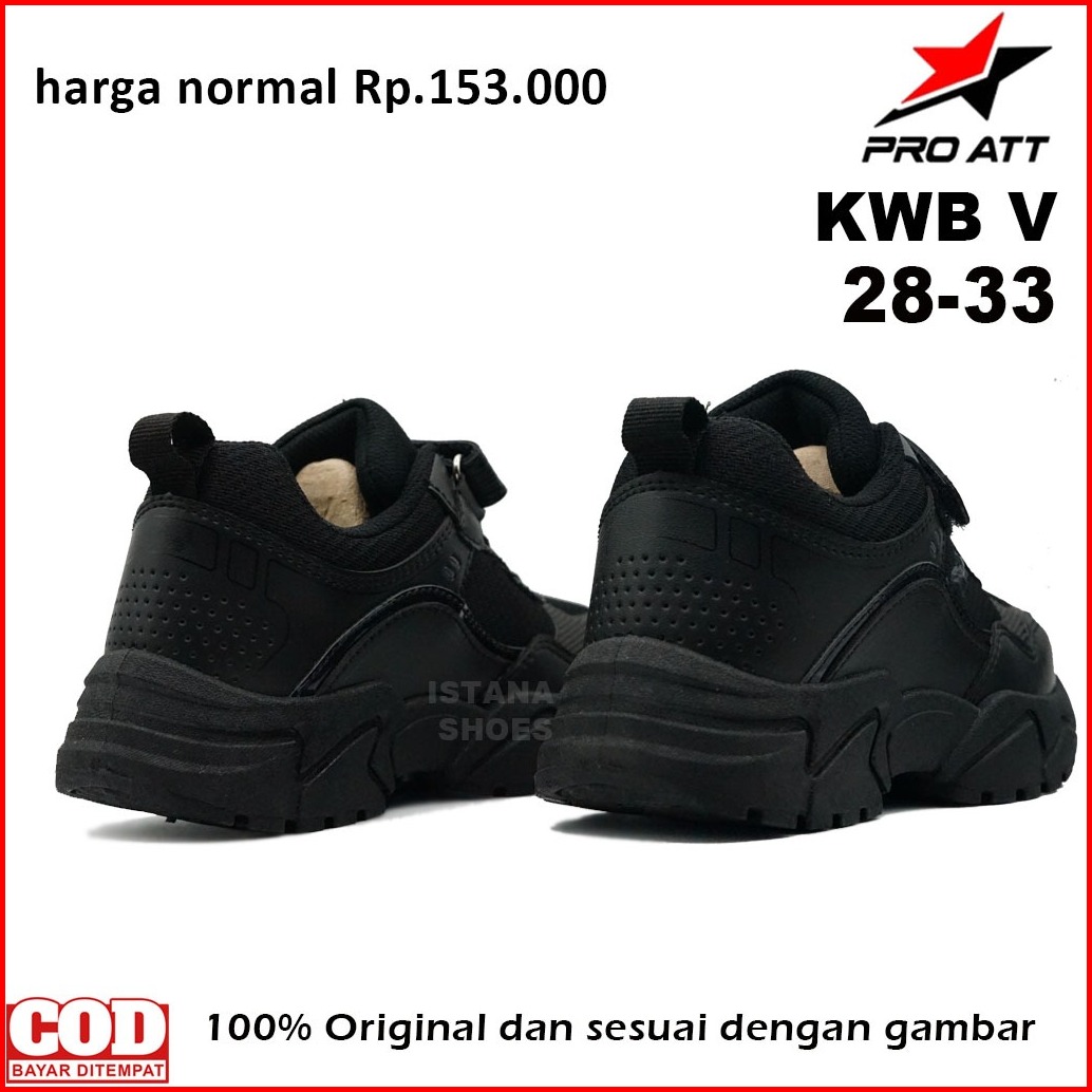 Sepatu Sekolah Anak Laki Laki Perempuan Paud Tk Sd Pro Att Kwb 120 V Full Hitam Perekat- Sepatu Sneakers Anak Balita Usi