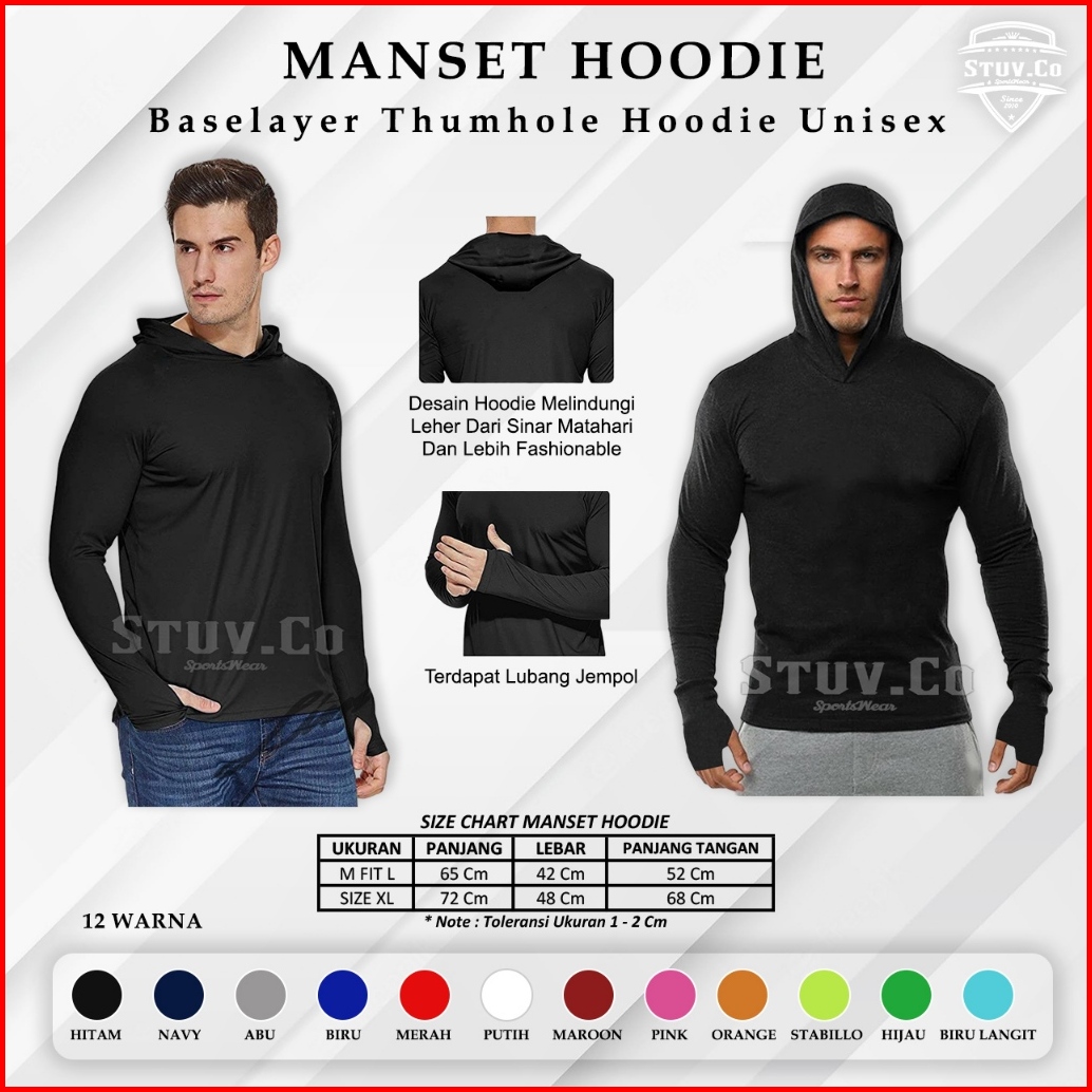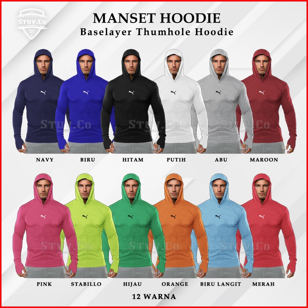 Manset Baselayer Thumbhole Hoodie Lengan Panjang Olahraga Gym Fitness Futsal Sepakbola Basket Pria Wanita