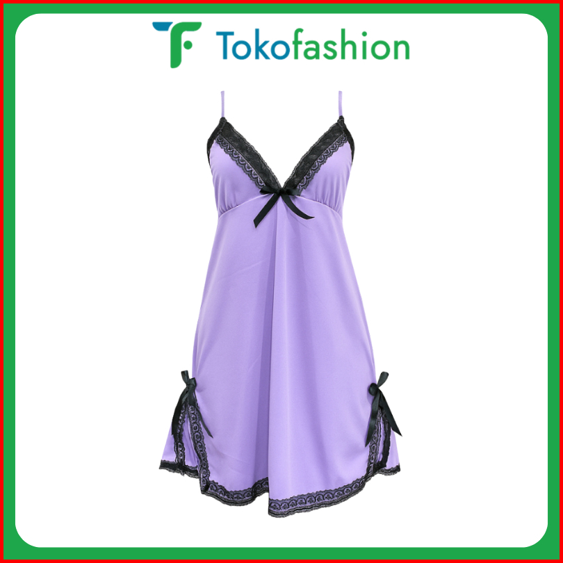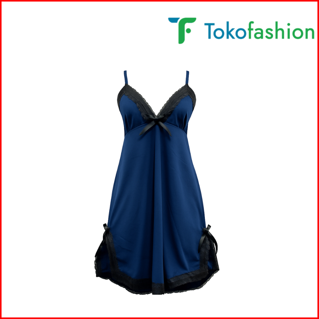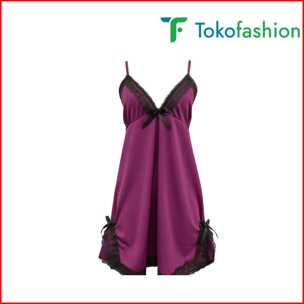 Tokofashion Baju Tidur Lingerie Wanita Gaun Mini Deep V Silk Renda Bahan Satin Bt003