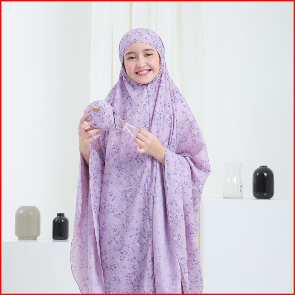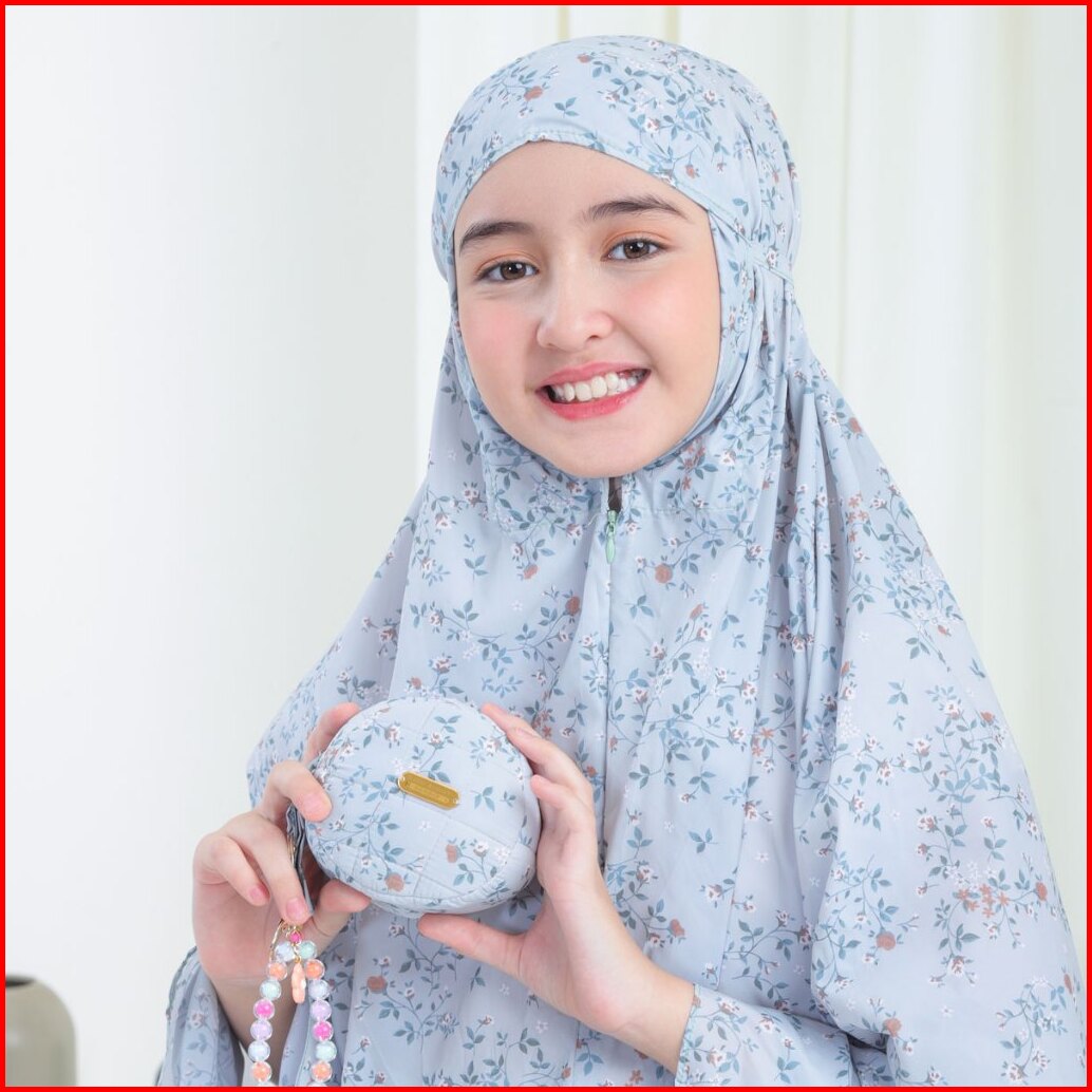 Mukena Traveling Mini Pouch Anak Perempuan Usia 6-12th Resleting 2in1 Parasut Motif Kombinasi