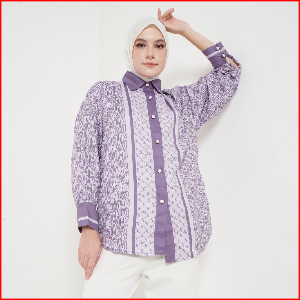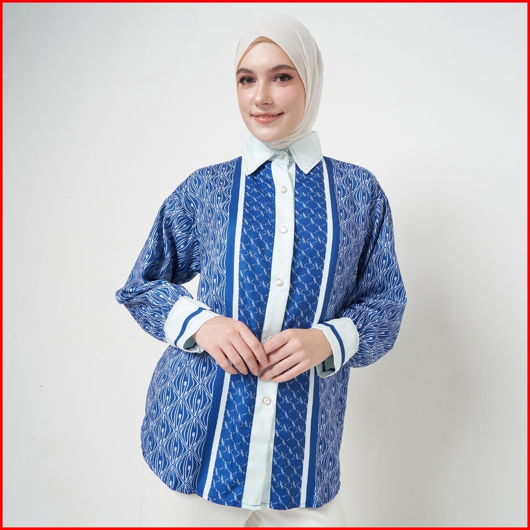 Yuglo - Atasan Wanita Kemeja Motif Terbaru Blouse Wanita Lengan Panjang Kemeja08