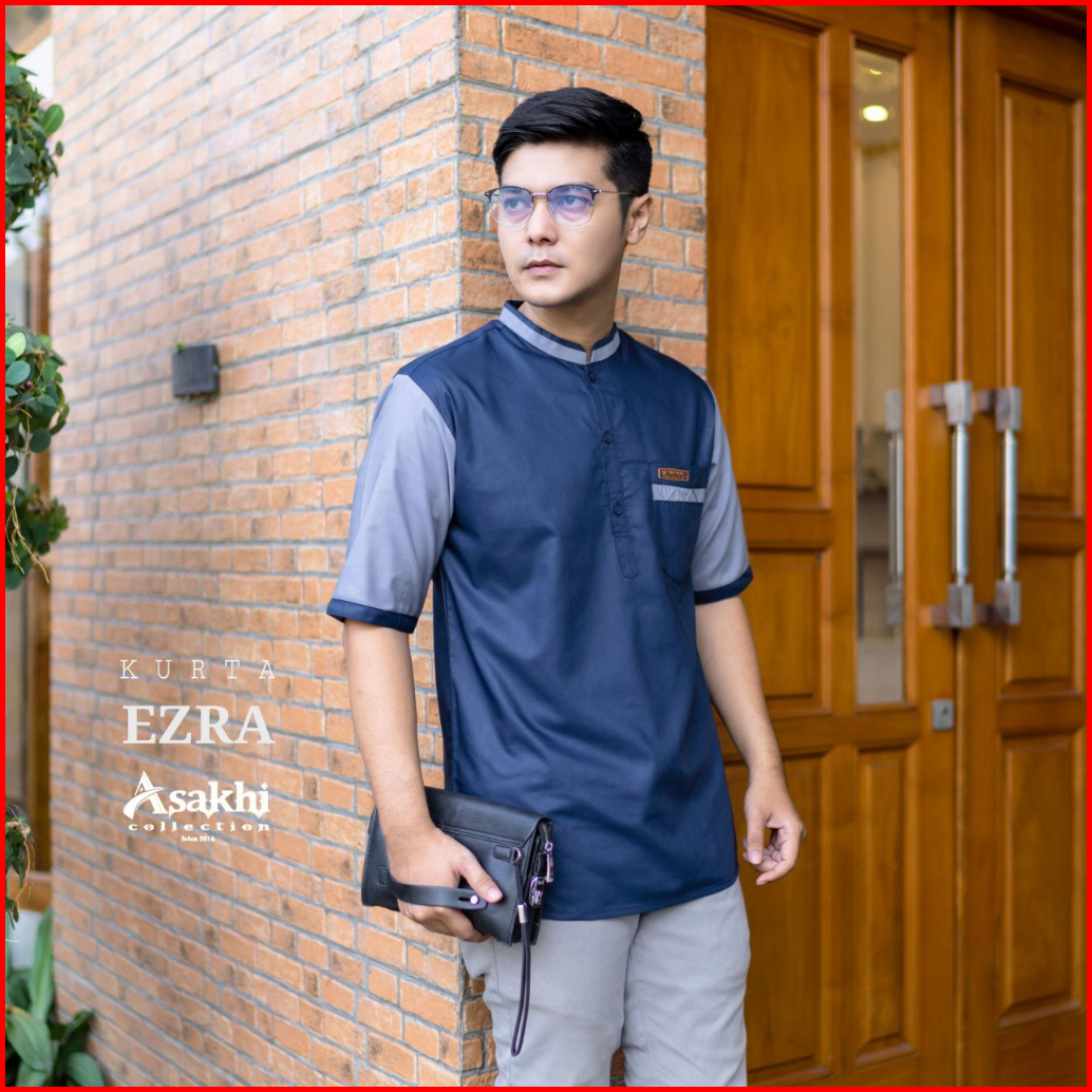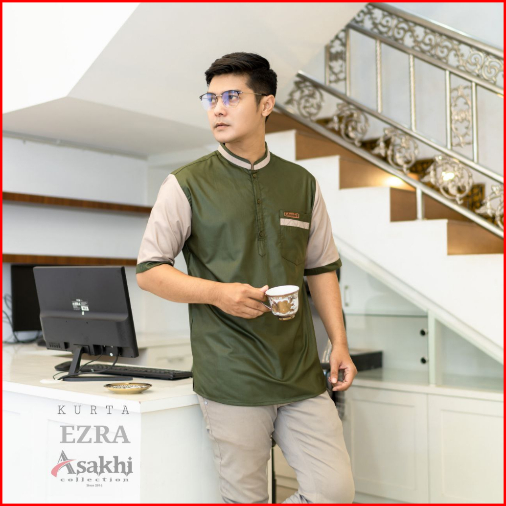 Asakhi Collection- Baju Koko Lengan Pendek Pria Dewasa Kurta Ezra New Arrival Warna Putih Katun Premium S.m.l.xl.xxl