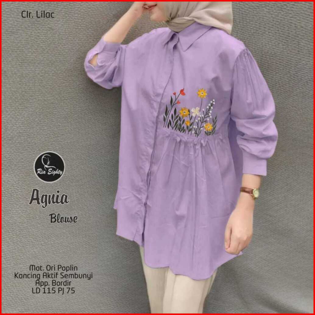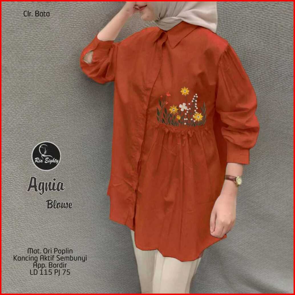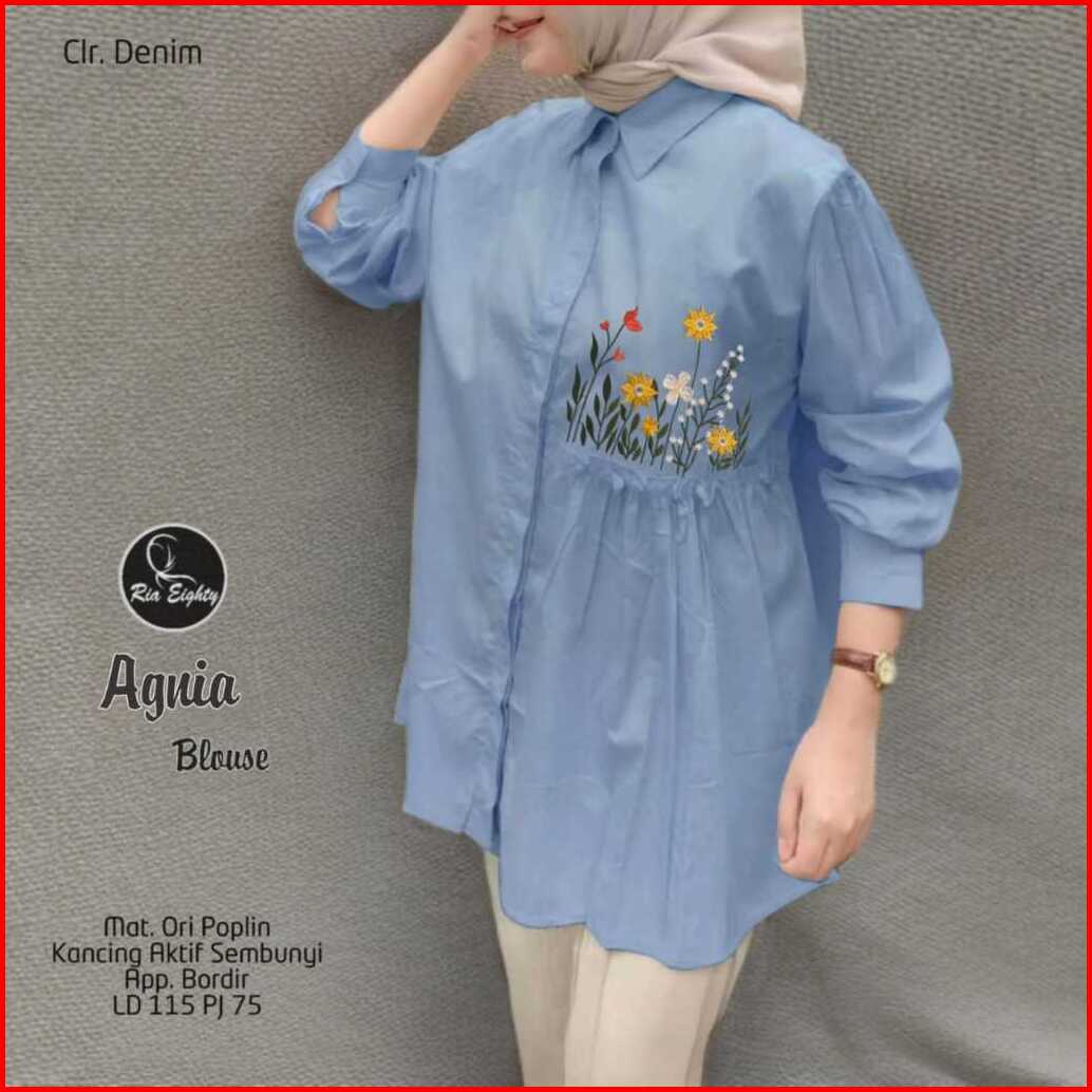Agnia Blouse Baju Atasan Kemeja Wanita Bordir Bunga Halus Adem Ld 115 Pj 75