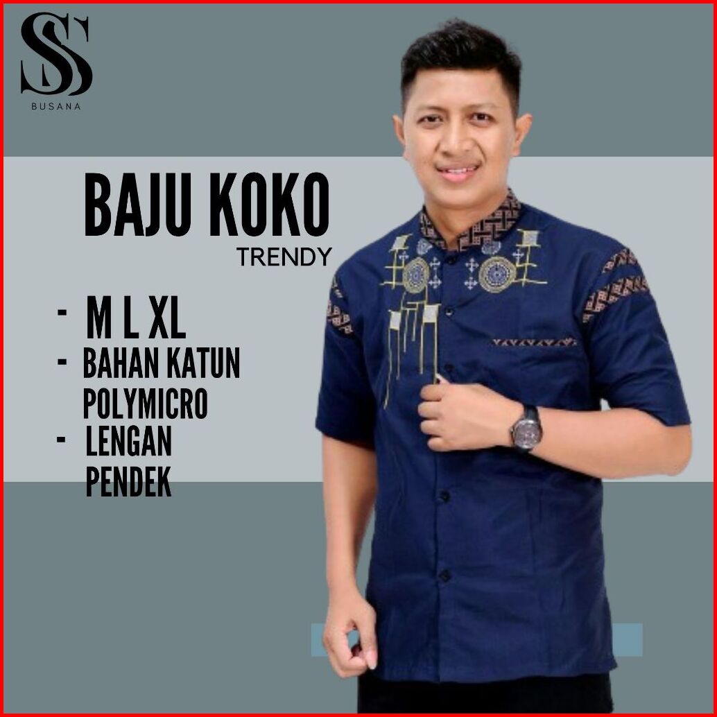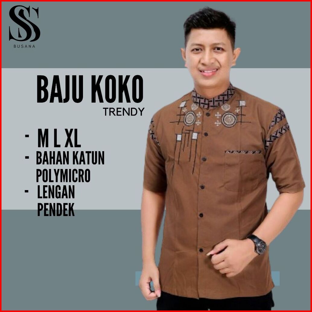 Baju Kemeja Koko Pria Dewasa Lengan Pendek Kombinasi Bordir M L Xl Terbaru