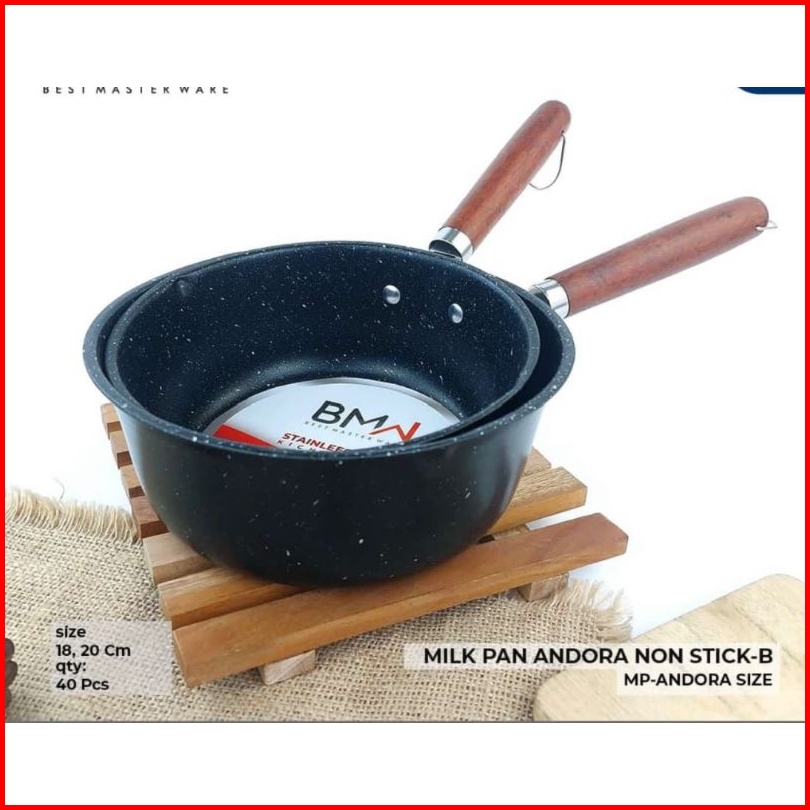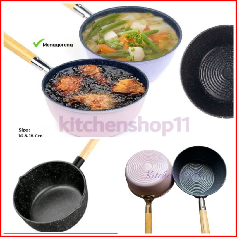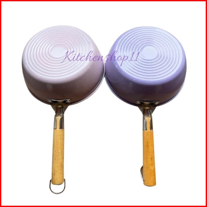 Panci Susu Marble Anti Lengket 20cm Gagang Kayu Bisa Induksi Panci Masak Mie Induksi Milk Pot Bintik Hitam Tebal Gagang