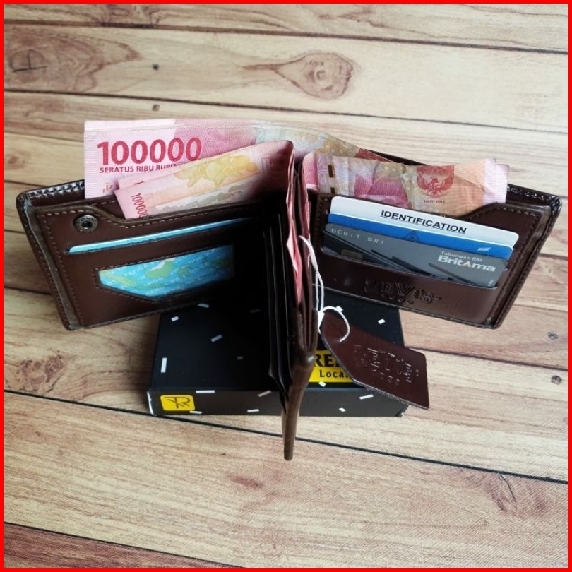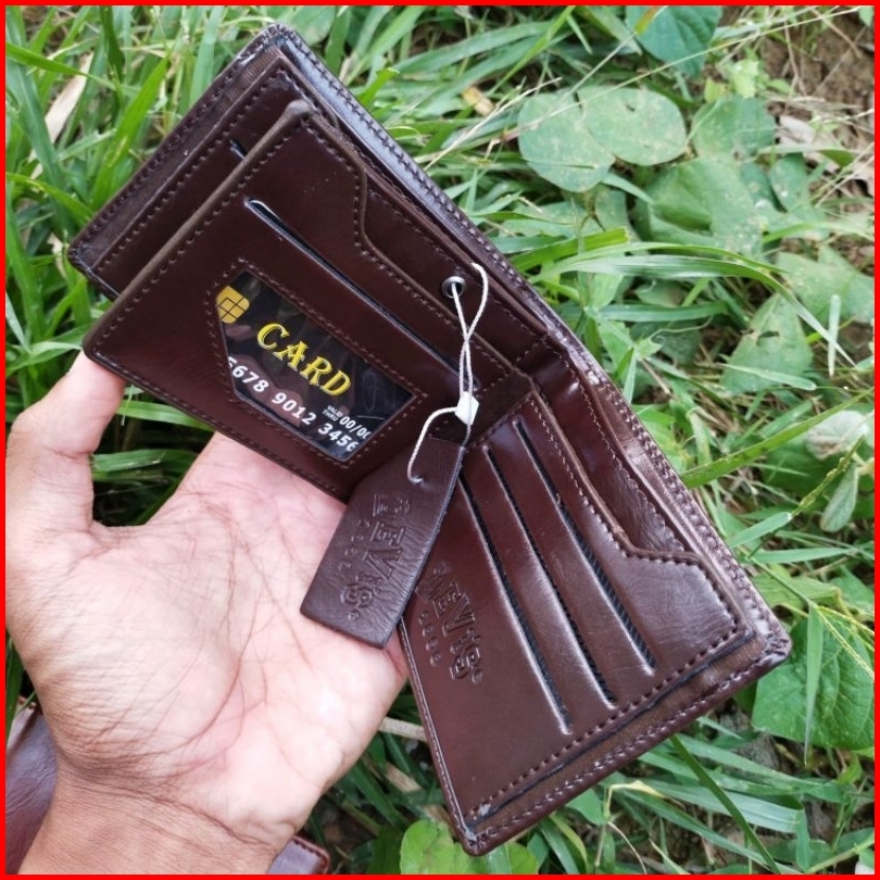 Dompet Lipat Pria Bahan Kulit Asli 4 Ruang Uang Kertas