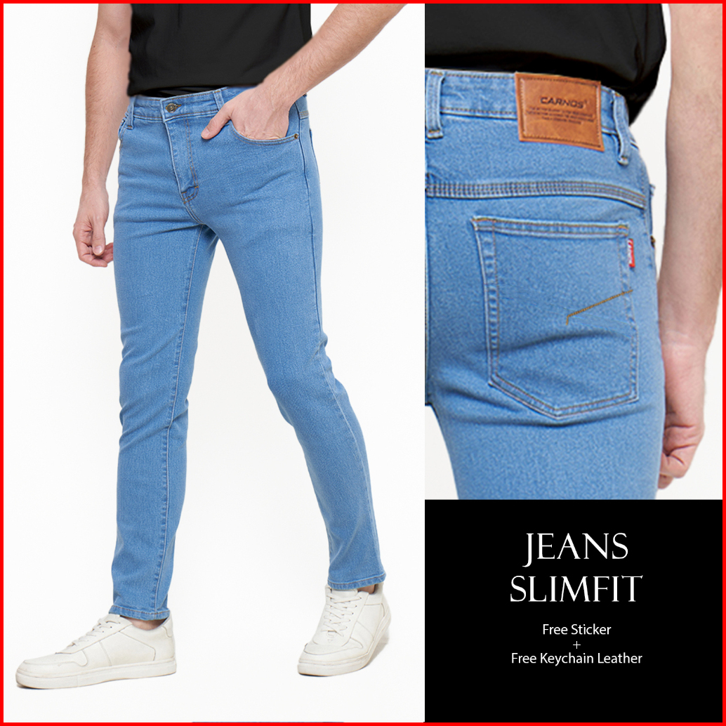 Carnos Excel Celana Jeans Panjang Slim Fit Pria Biru Muda