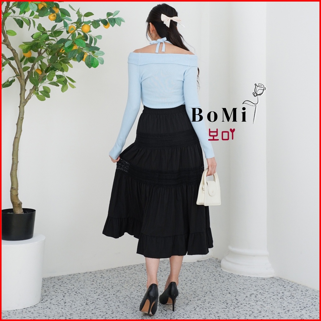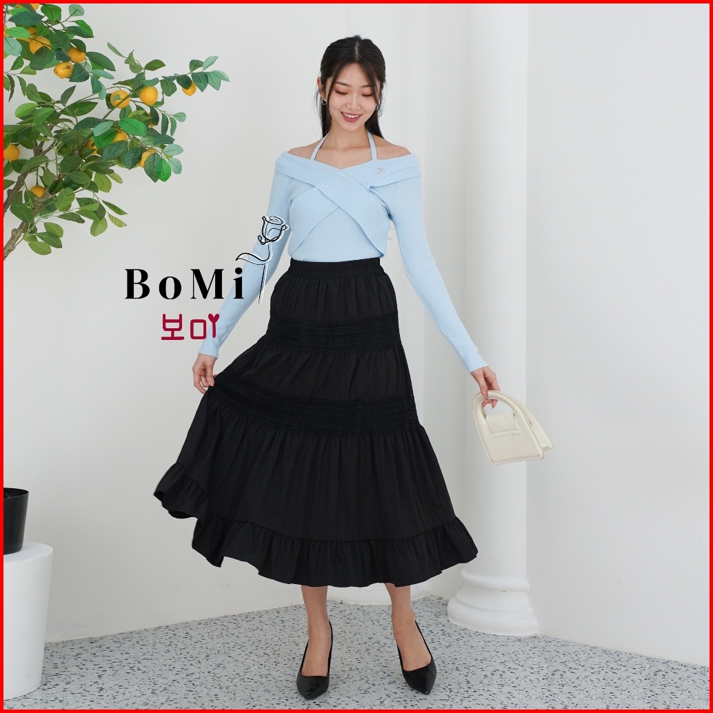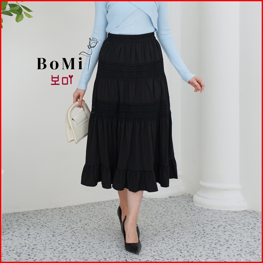 Bomi - Karen Skirt Korean Katun Rok Panjang Wanita Tingkat Susun Premium Rok Wanita Basic Daily Dengan Furing Nyaman Ful