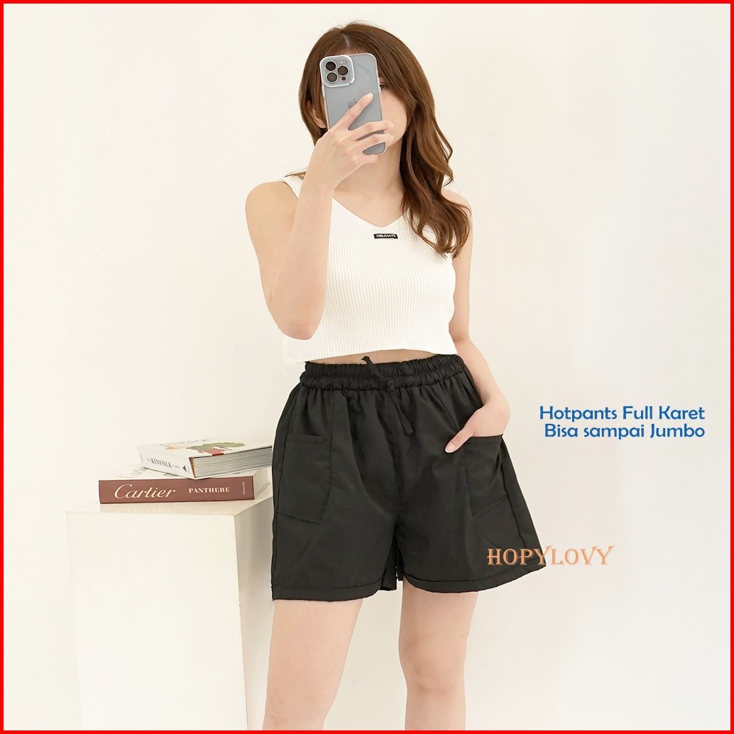 Celana Pendek Wanita Jumbo Hotpants Jumbo Wanita Celana Pendek Jumbo Wanita Hot Pants Pinggang Karet Big Size Deya - Hop