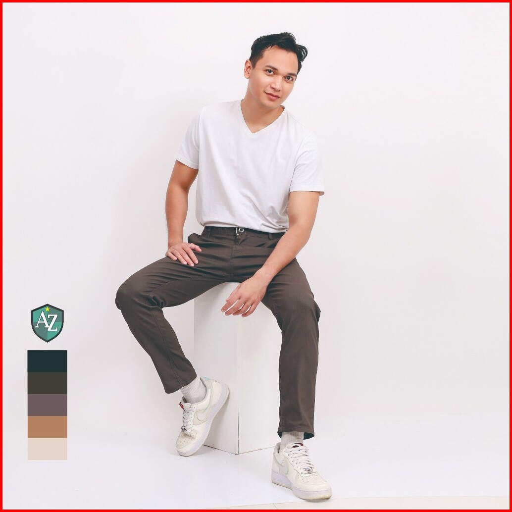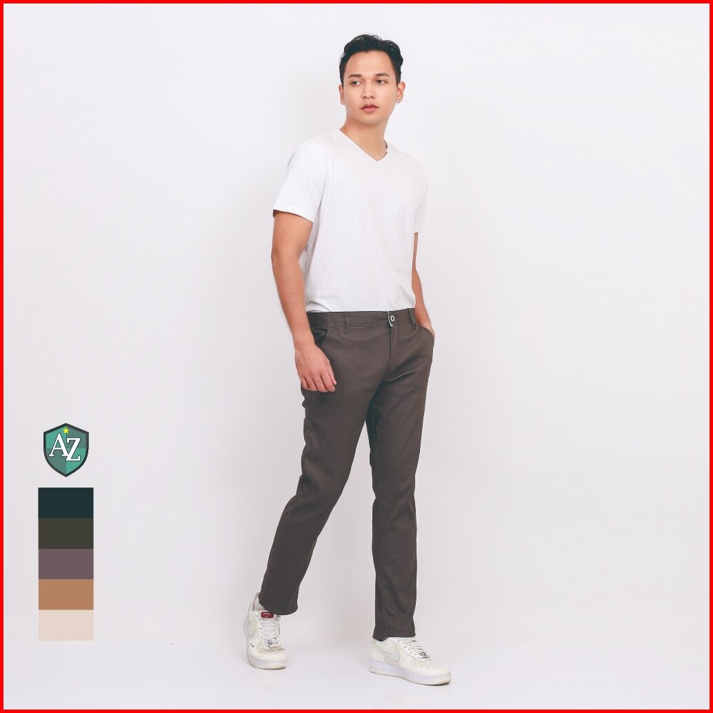 Arzanka - Celana Chino Chinos Panjang Gey Abu Polos Pria Slimfit