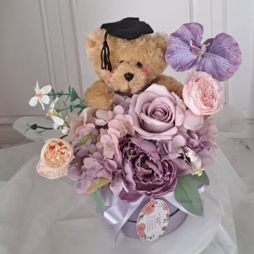 READY BUKET bunga wisuda mawar artificial lilac biru graduation kado ultah ulang tahun
