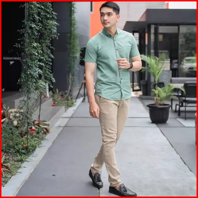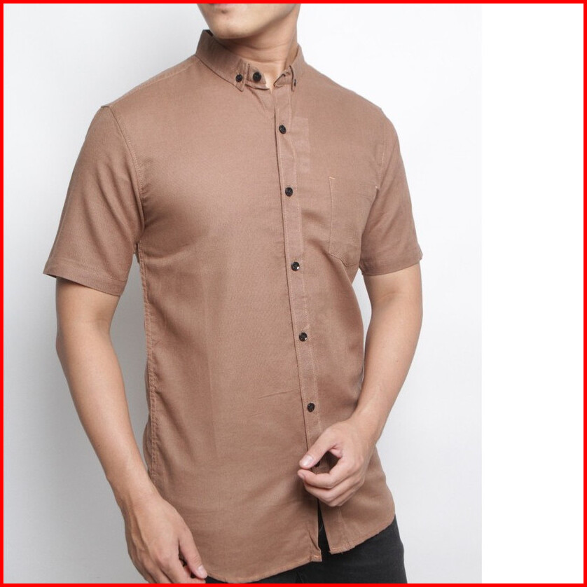 Arzanka - Kemeja Pria Cowok Polos Lengan Pendek Hem Slimfit Casual Kantoran