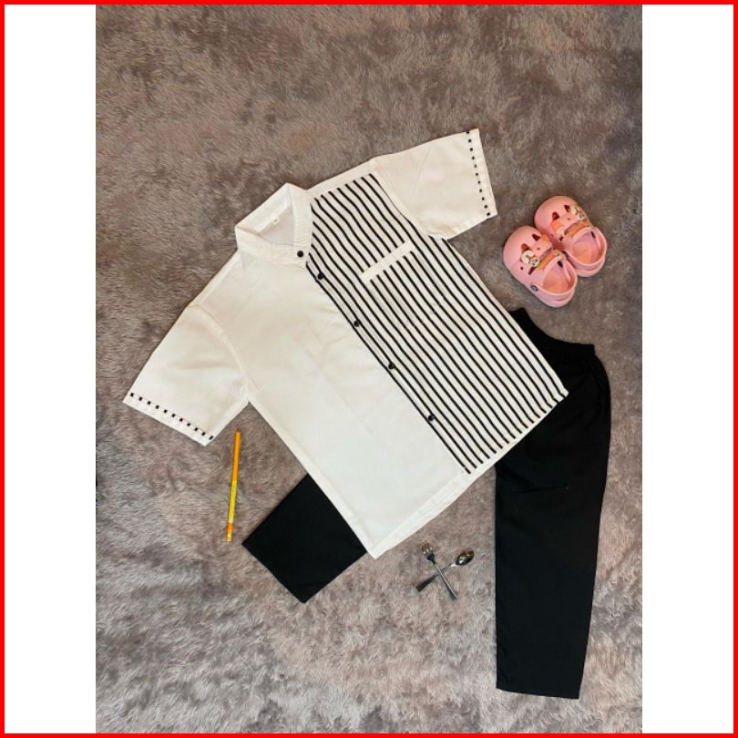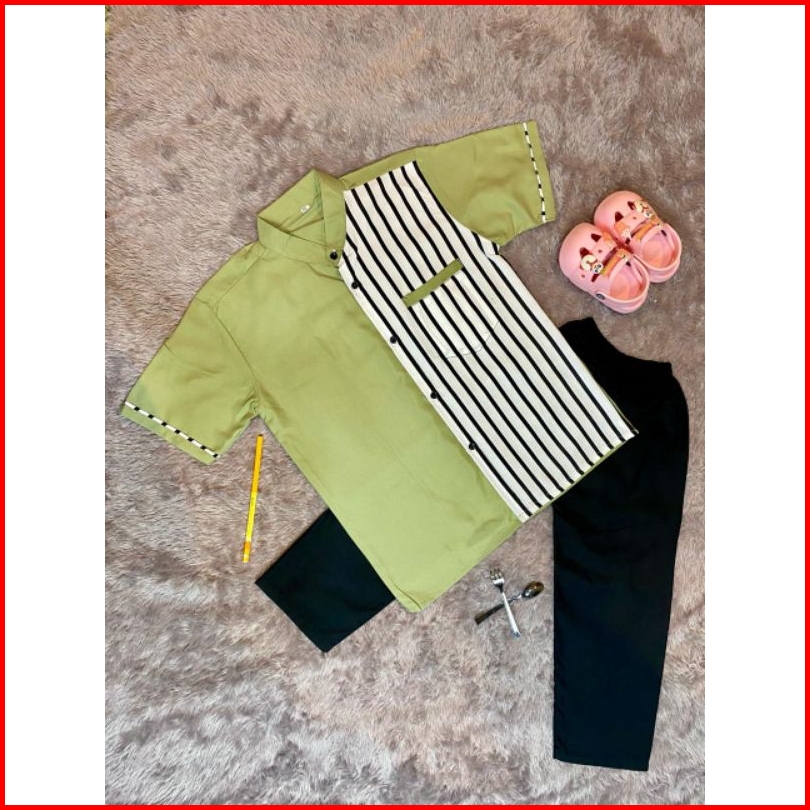 Koko Anak Setelan Motif Salur Sarkoci Sarung Koko Peci Usia 1-10tahun
