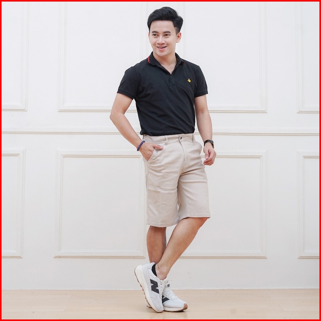 Arzanka - Celana Chino Pendek Cream Polos Pria Katun Stretch