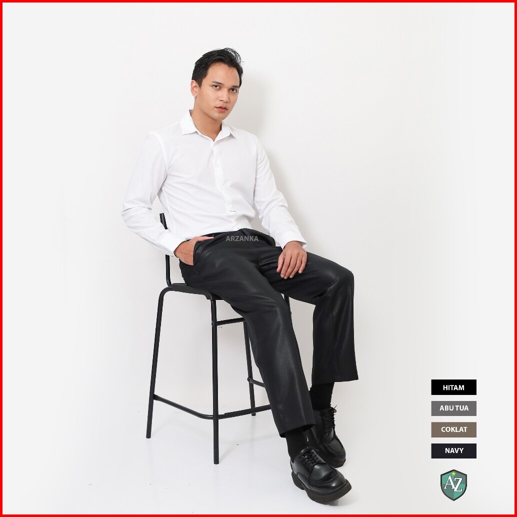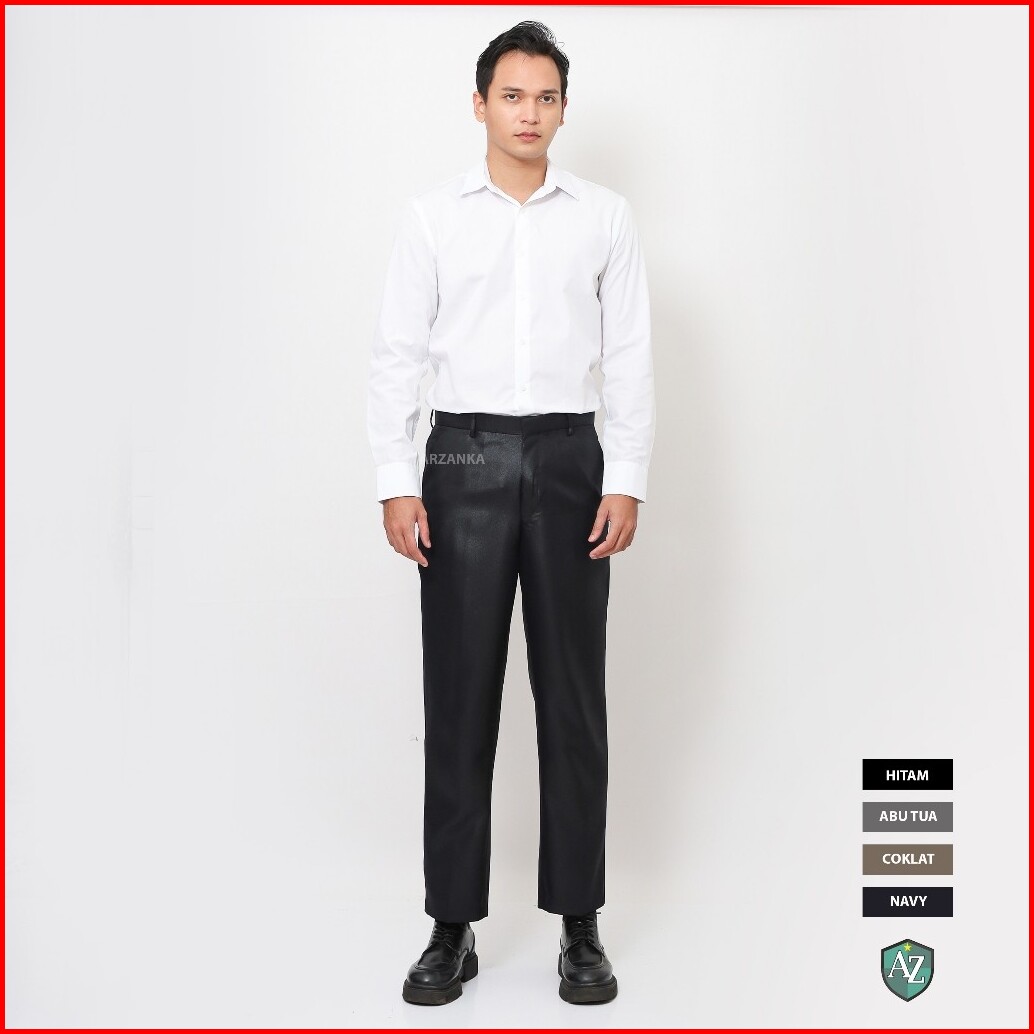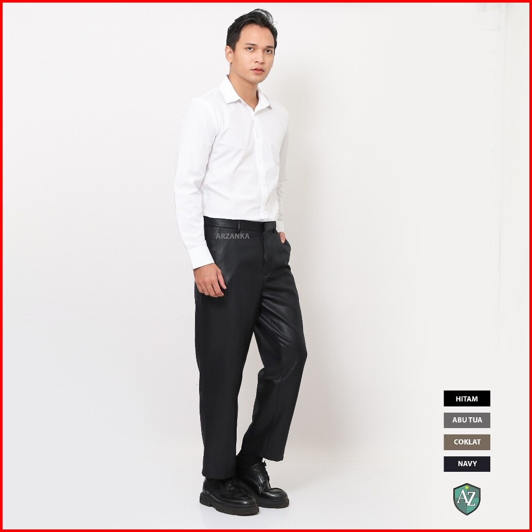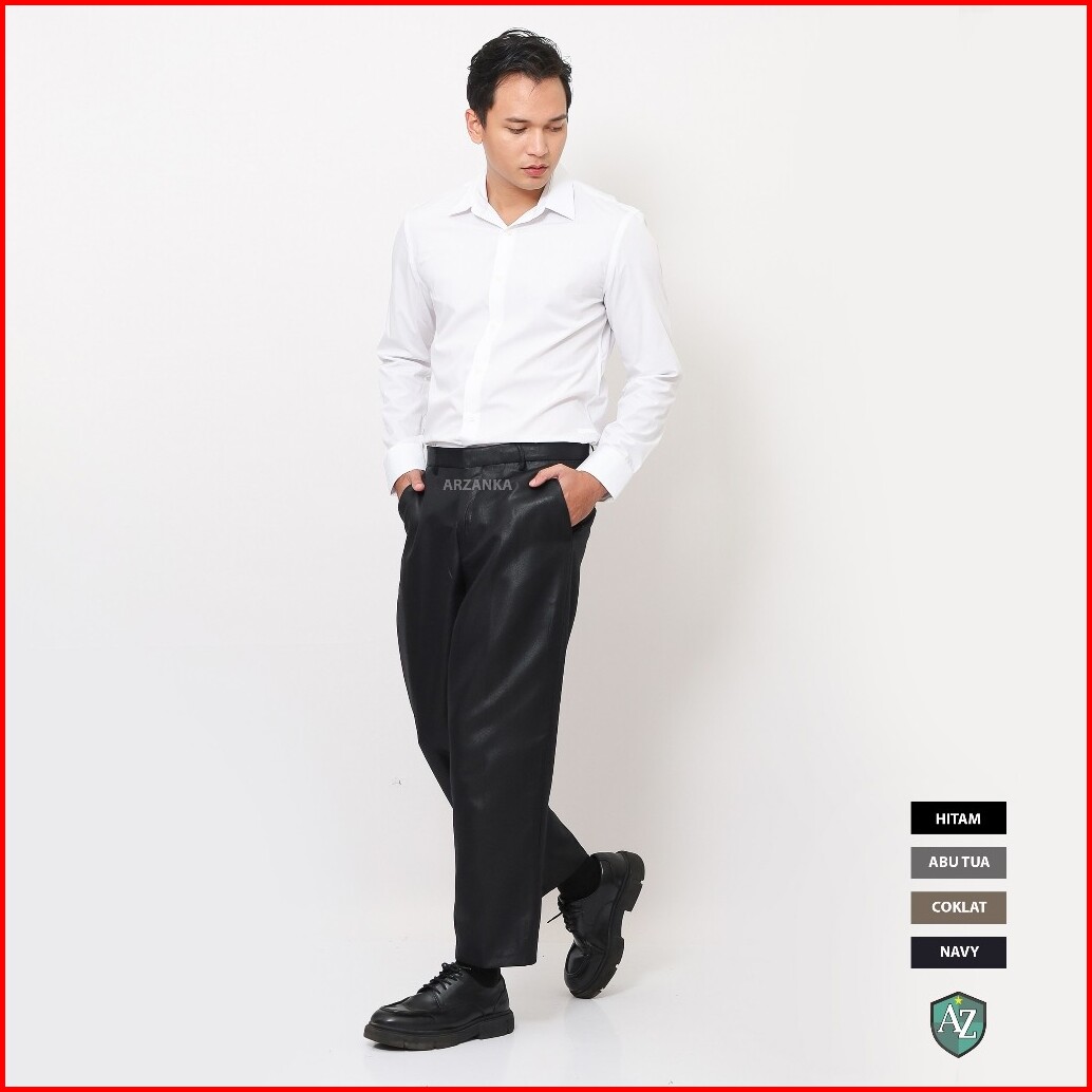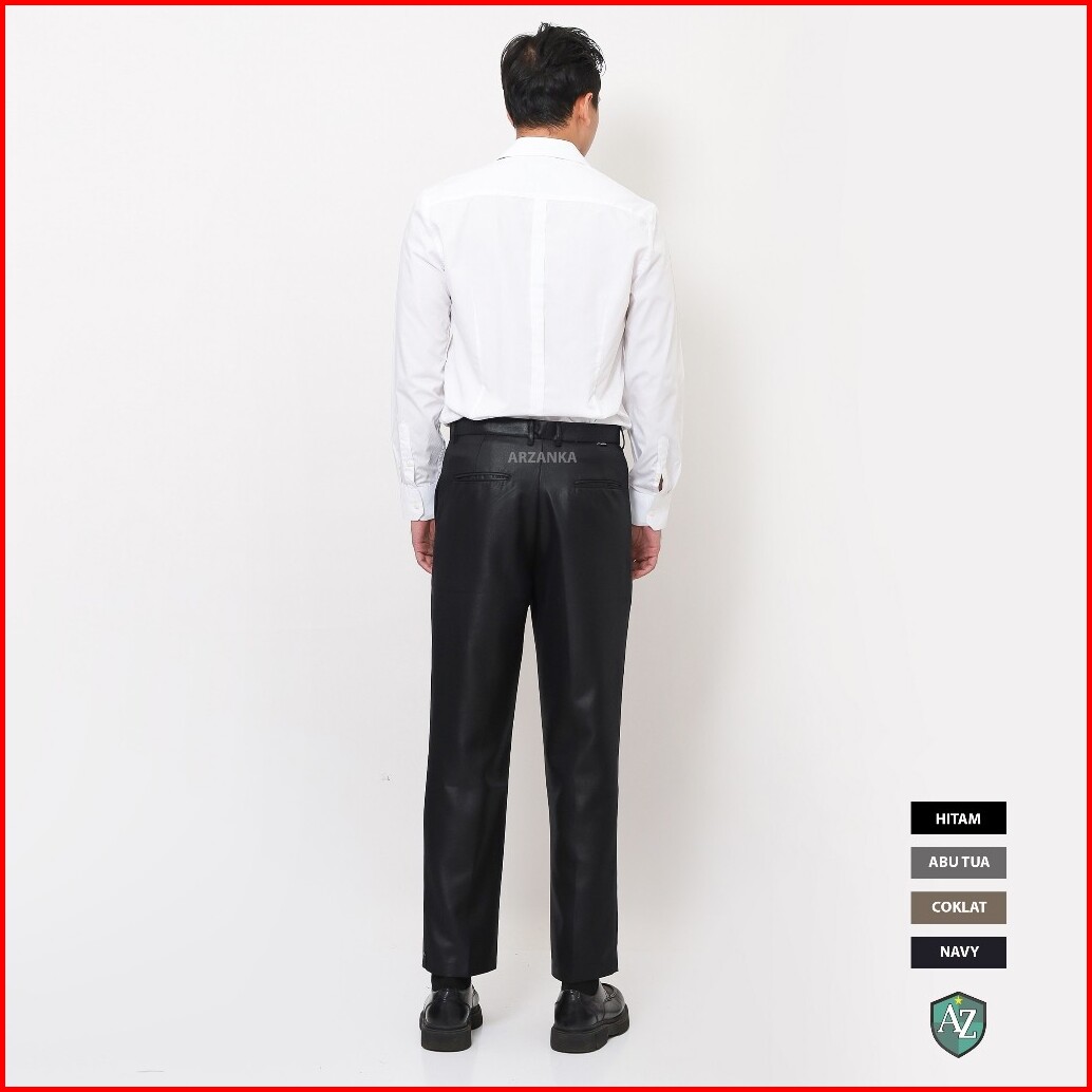 Arzanka - Celana Kerja Warna Hitam Formal Kantor Bahan Mengkilap Metalik