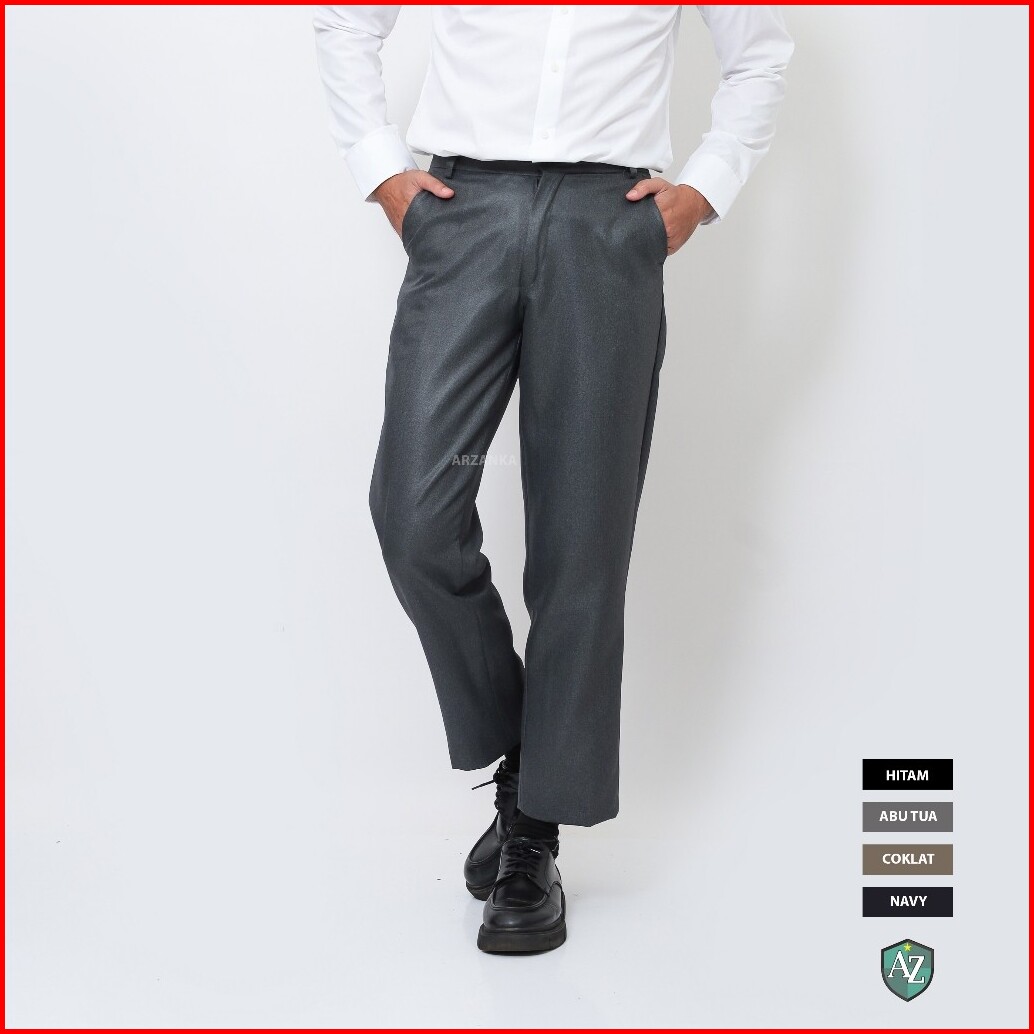 Arzanka - Celana Kerja Warna Abu Tua Formal Kantor Bahan Mengkilap Metalik