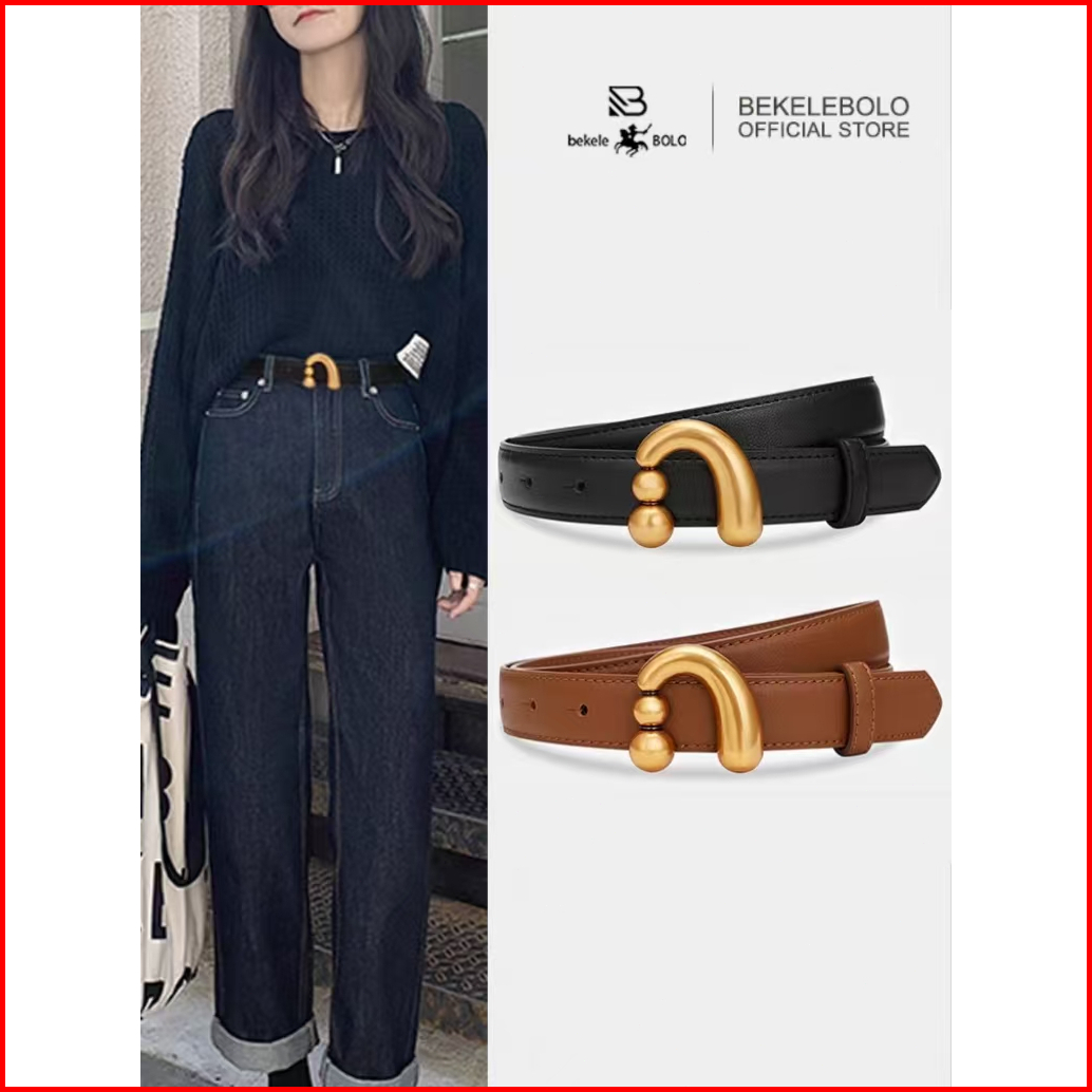 Bekelebolo 424 Ikat Pinggang Wanita Belt Kulit Vintage Pernik Bulat Logam Kekinian Trendy 2025
